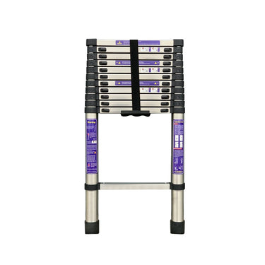 - Durable stainless-steel extendable ladder for versatile indoor and outdoor use.