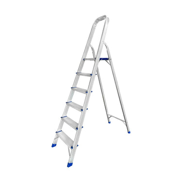 GROVIA Aluminium Step Ladder with Handrail 6/7 Step - Wide Anti-Slip Pedals, Foldable & Space-Saving Design