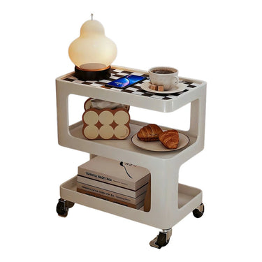 LIVARA Coffee Side Table, Matte Black Carbon Steel Frame, Sintered Stone Top, Three-Tier Storage, Lockable Wheels - White
