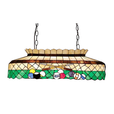 LIVARA Billiard Table Light - Billiard Design Stained Glass, Handmade Craft, Durable Iron Fittings, E27 Socket, Vintage Pool Table Lighting - Green