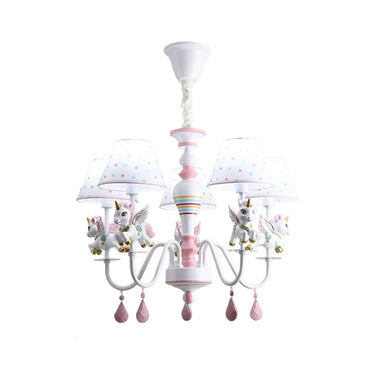 LIVARA Unicorn Eye-Care LED Chandelier White/Warm/Tri-Color Light, Iron & Resin Ceiling Lamp with Fabric Shade for Kids Room