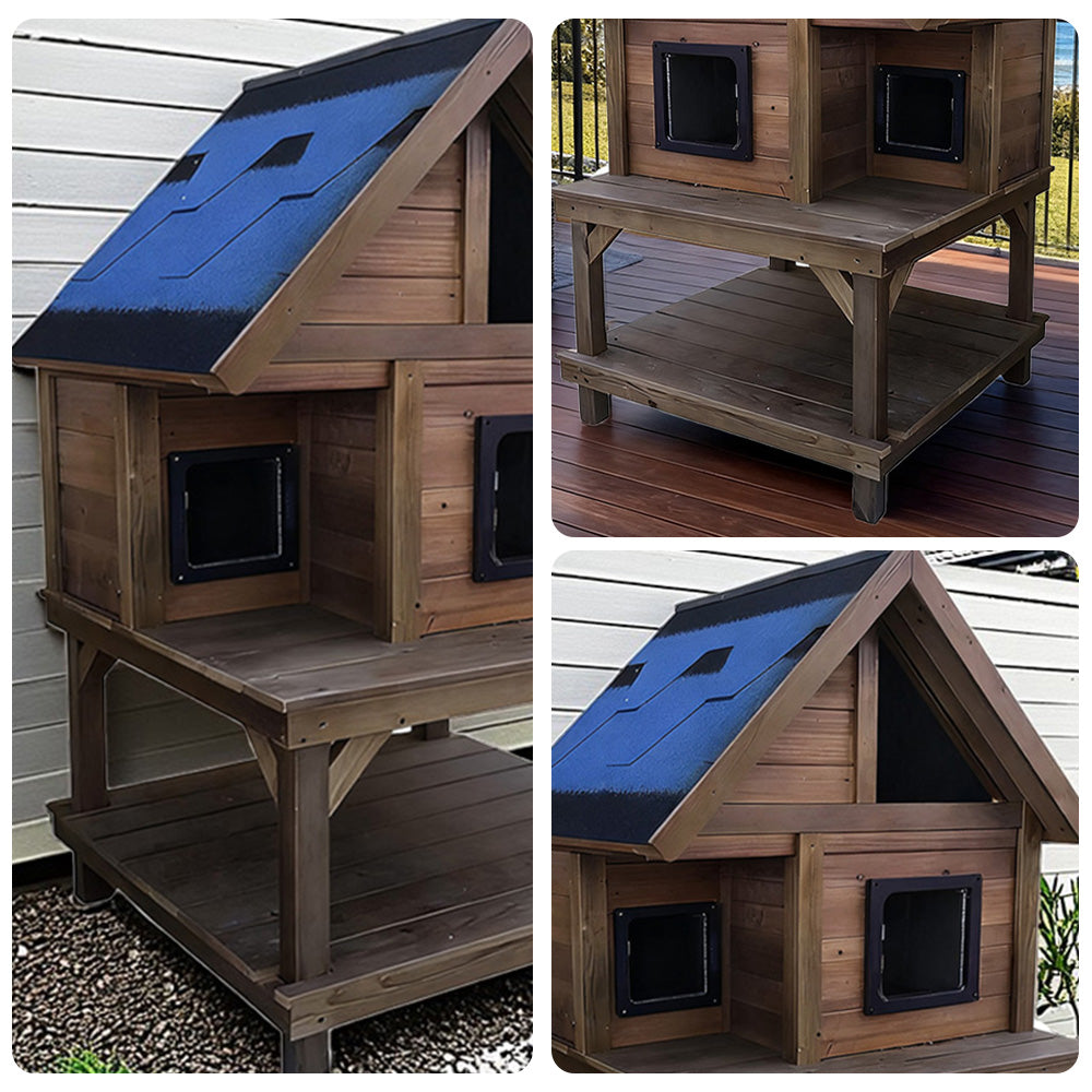 PAWORA Outdoor Cat House 130/160cm - Fir Wood, Scratch-Resistant, Moisture-Proof, Ventilated with Waterproof Roof, All-Weather Shelter - Wood