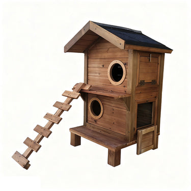 PAWORA Outdoor Cat House - Durable Fir Wood, Scratch-Resistant, Moisture-Proof, Ventilated Design with Waterproof Roof, All-Season Pet Shelter - Wood