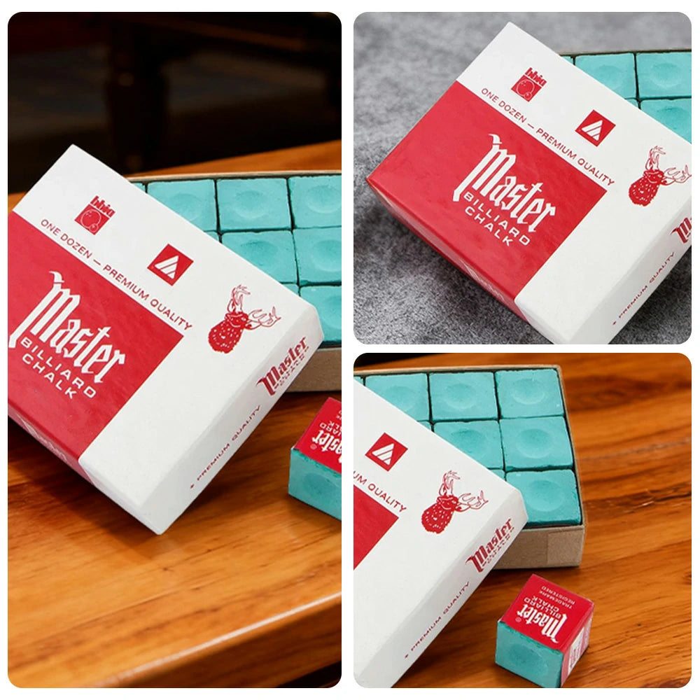 ARIX Master 12-Pack Billiard Cue Chalk, Premium Texture & Consistent Grip - Green