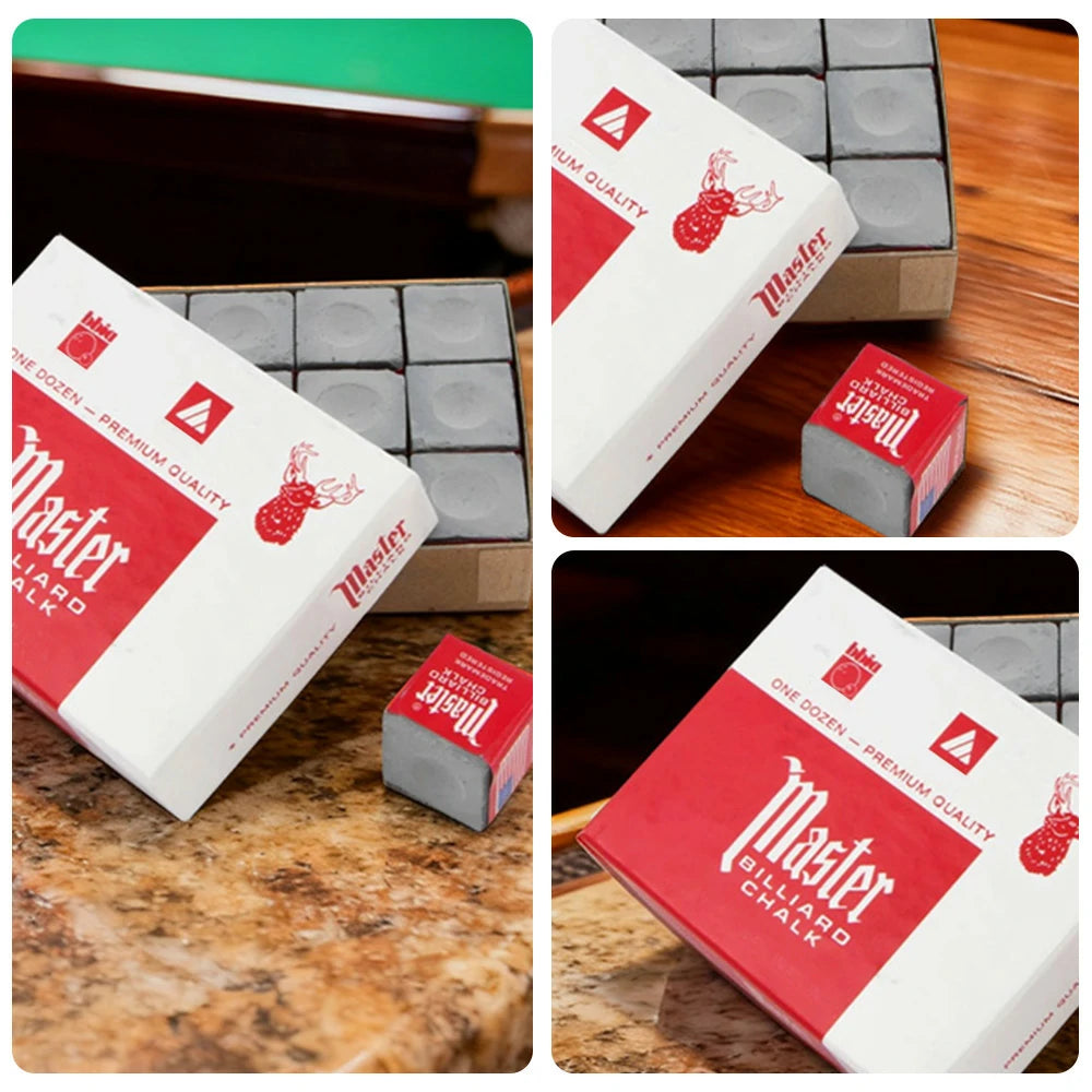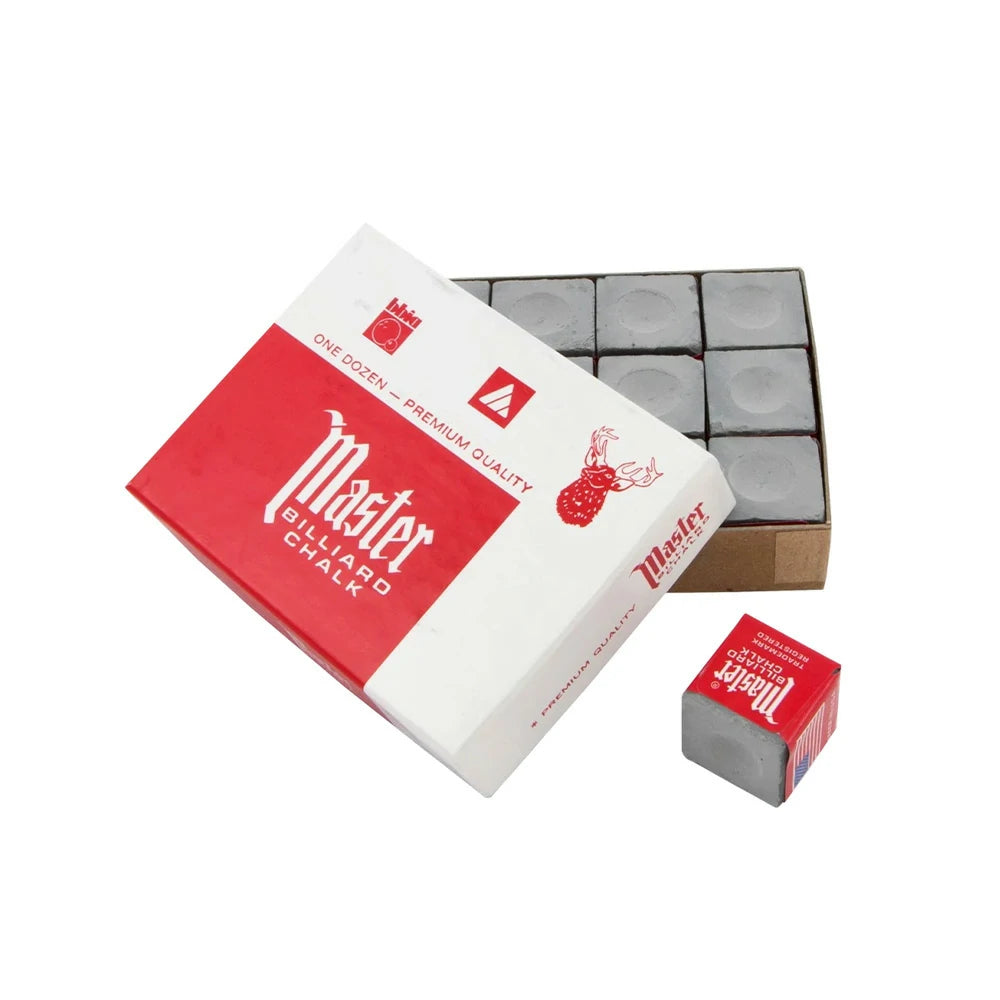 ARIX Master 12-Pack Billiard Cue Chalk, Premium Texture & Consistent Grip - Grey
