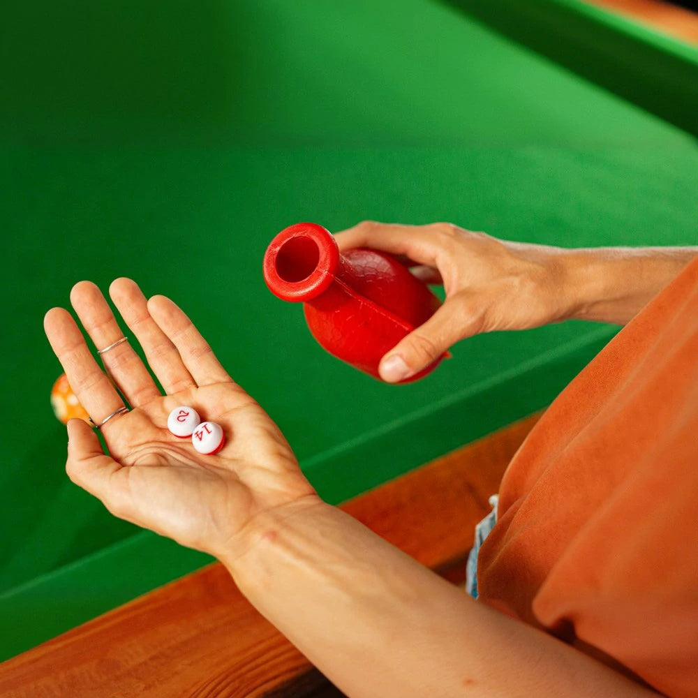 ARIX Leather Kelly Pool Shaker Bottle, Premium Black Shaker for 16 Kelly/Pea Pool Marbles - Red