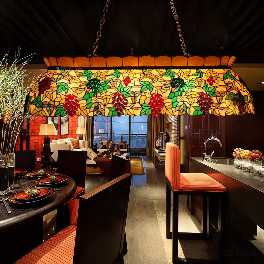 ARIX Billiard Table Light - Fruit Design Stained Glass, Handmade Craft, Durable Iron Fittings, E27 Socket, Vintage Pool Table Lighting