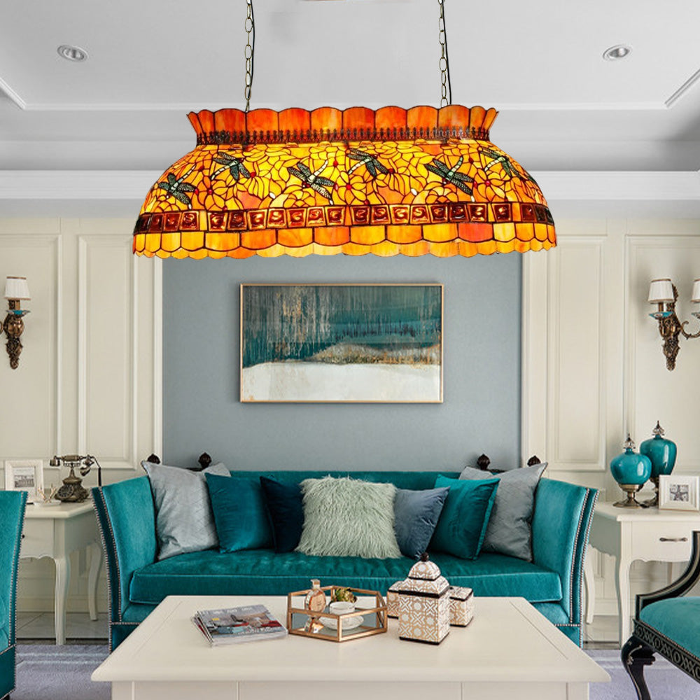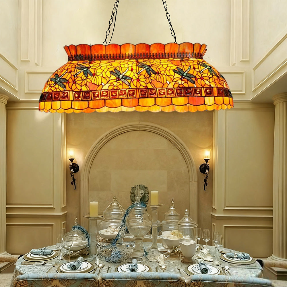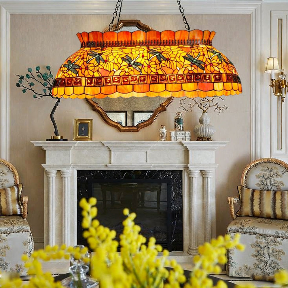 ARIX Billiard Table Light - Handmade Stained Glass, Durable Iron Fittings, E27 Socket, Artistic Vintage Pool Table Lighting - Yellow