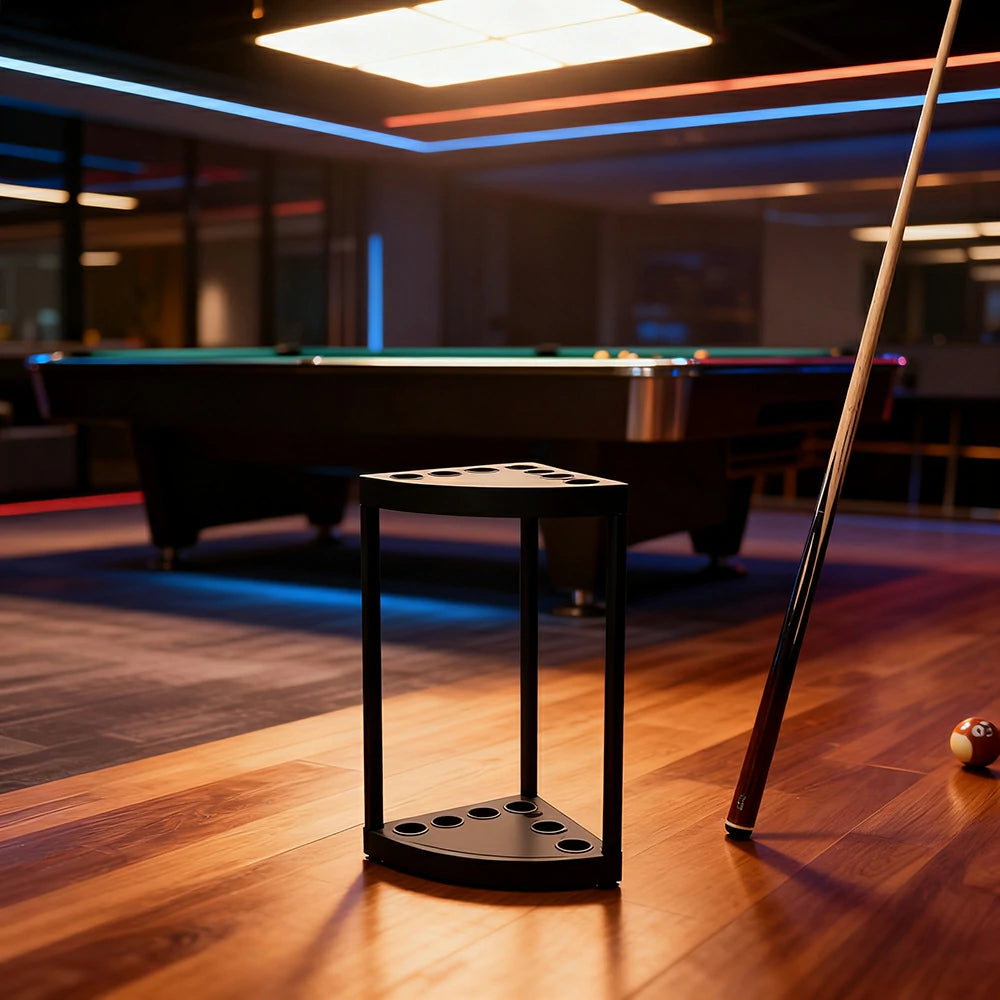 ARIX 7-Hole Cue Rack Space-Saving High-Capacity Iron Frame Rust-Resistant Baked Finish Triangle Shape Design with Soft Rubber Inserts - Black