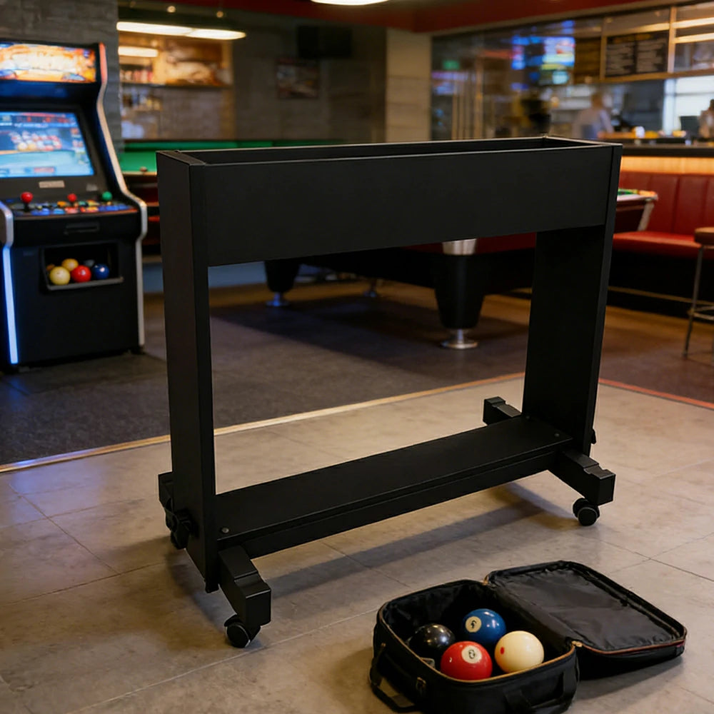 CUETIQ Pool & Table Tennis Table Top Storage Trolley - Heavy-Duty Steel, Lockable Wheels, Space-Saving Vertical Design - Black