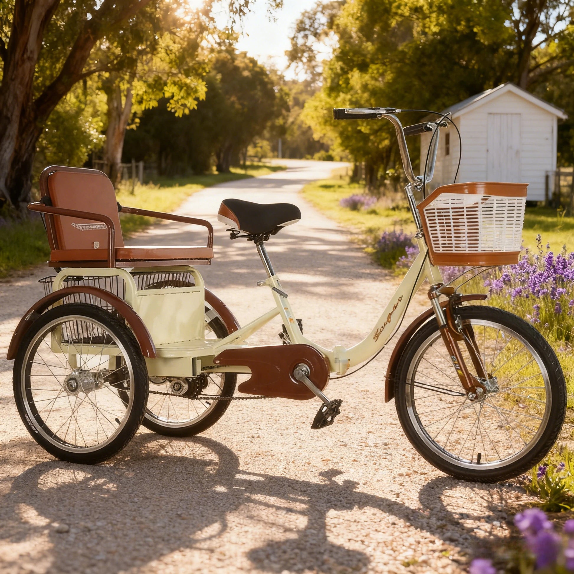 VOLTUS 20 Inches Suspension Fork Foldable 3 Wheels Bike W/ Basket Widened Seat Adult Tricycle