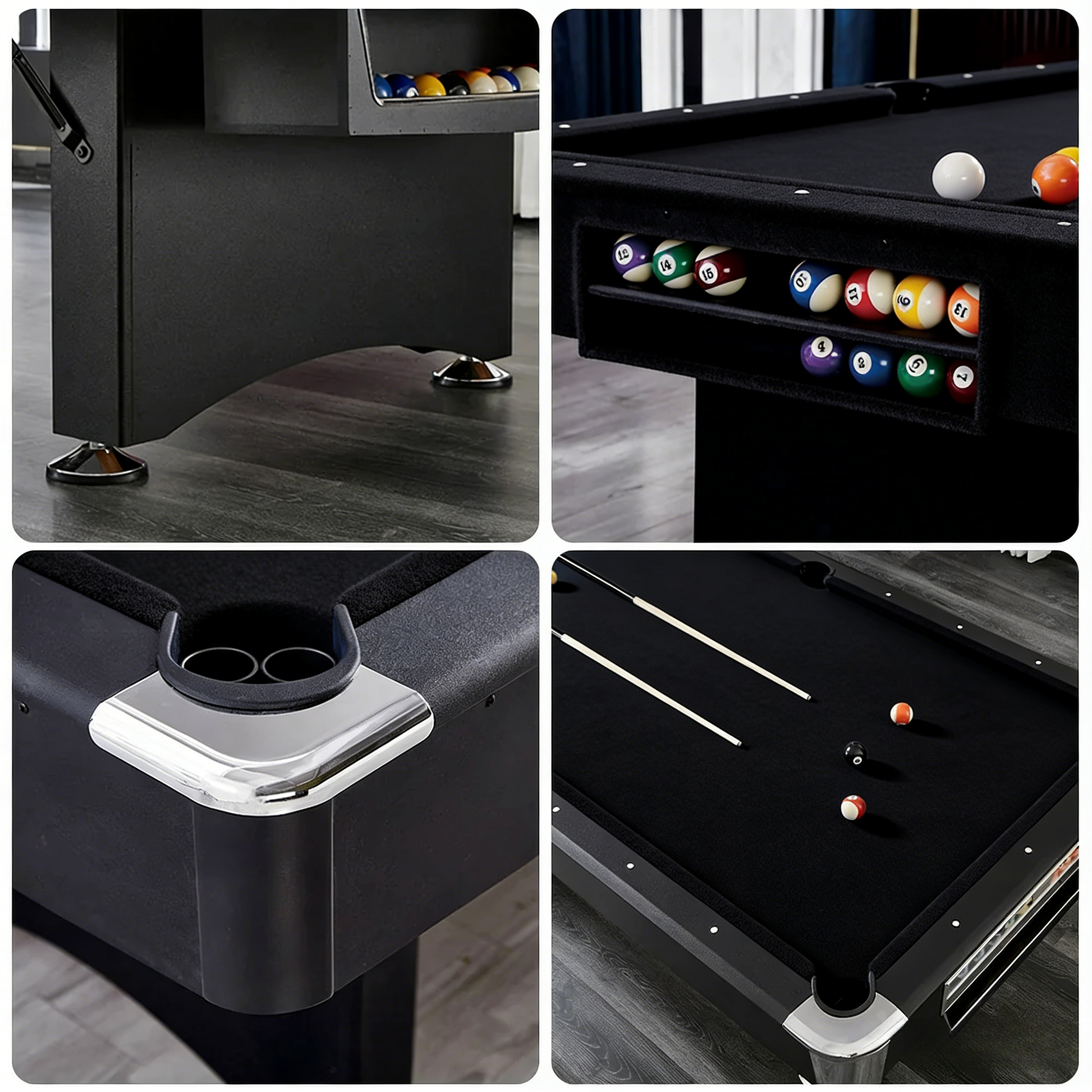 CUETIQ TE 3-IN-1 P038 7FT/8FT Foldable Green MDF Billiard Table with Free Accessories - Black