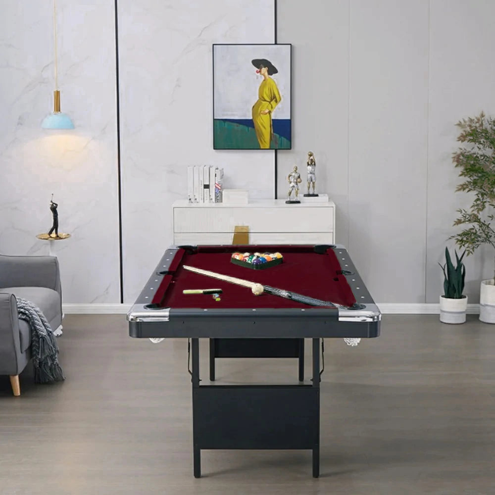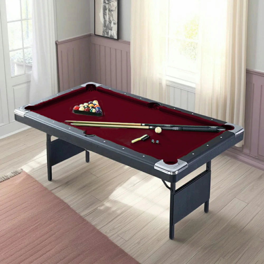 CUETIQ TEFOLD 7FT/8FT MDF Billiard Table - Foldable Design, Smooth Speed Cloth, Stable Frame, Free Accessories - Red