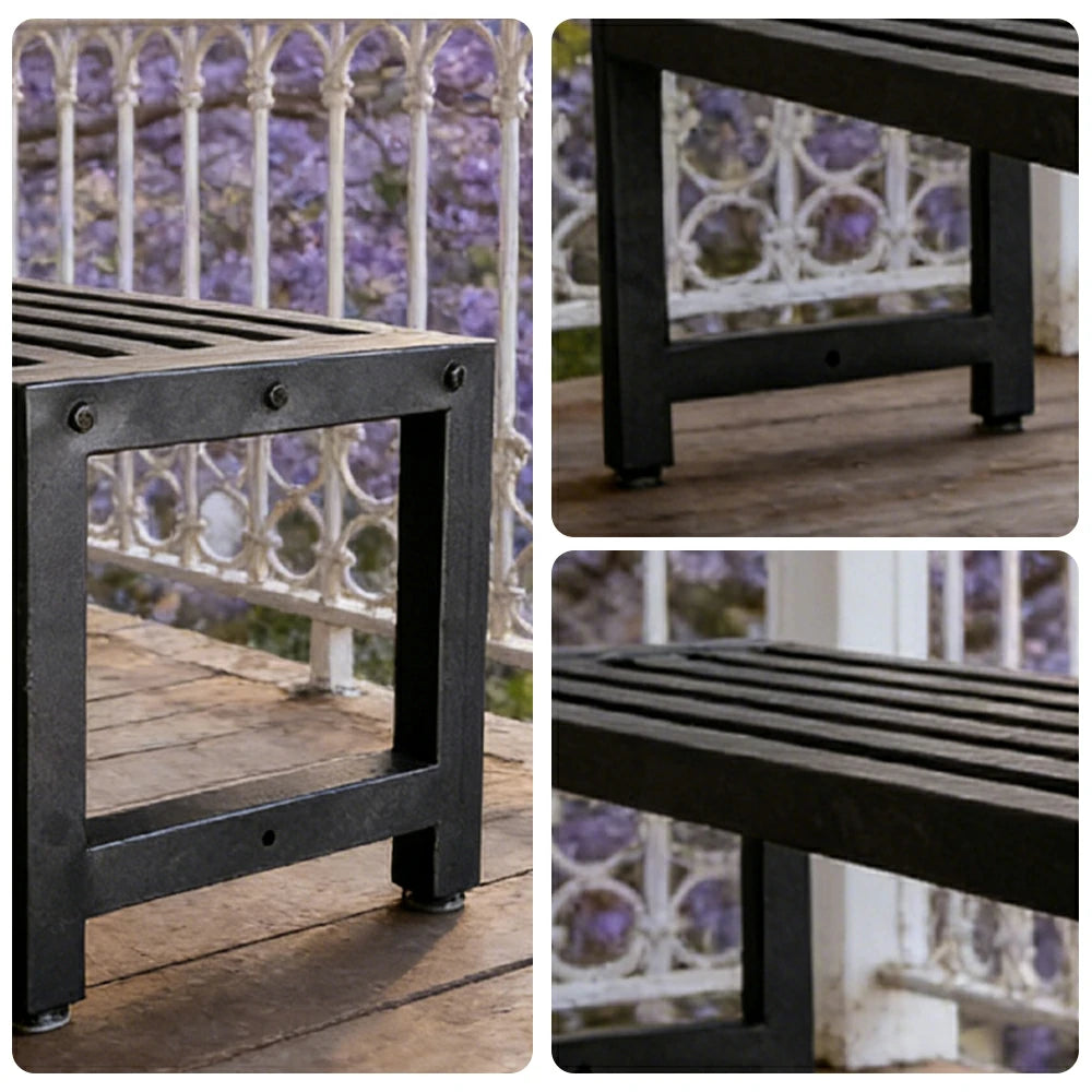 CUETIQ Outdoor Pool Table Bench - Minimalist Open Frame Metal Waterproof Outdoor Seating for Backyard Patio Games - Black