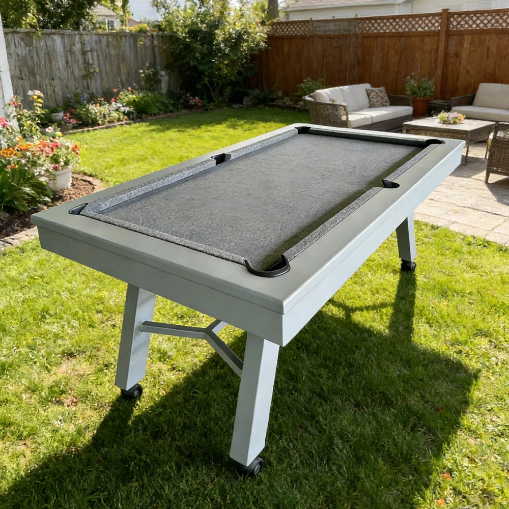 CUETIQ 7FT Outdoor Pool Table - Slanted Leg Design Metal Frame Waterproof Billiard Table for Backyard Patio Games - Grey & Grey