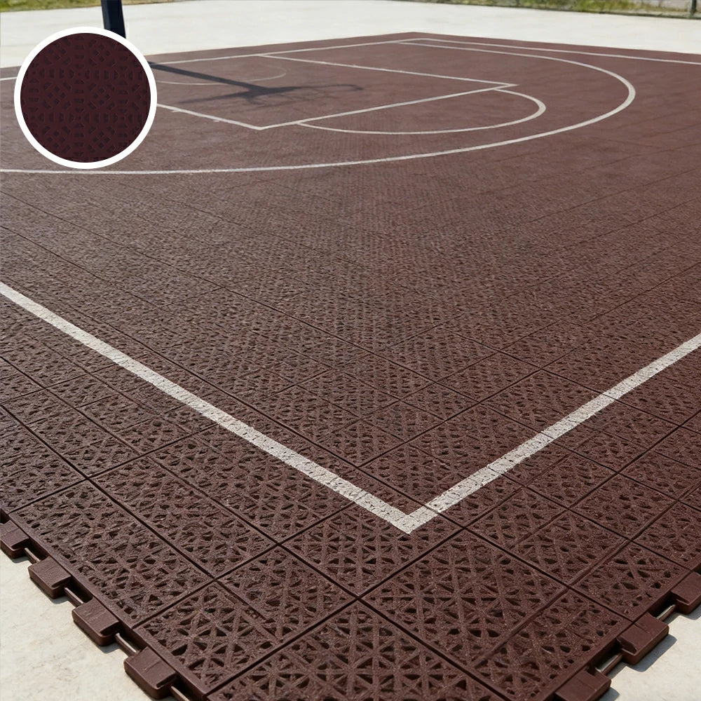 DUNK MASTER Interlocking Sports Floor Tiles - Anti-Slip Grid Pattern Court Flooring 25cm Modular Tiles for Basketball Courts 10/20/30 Square Meters - Coffee