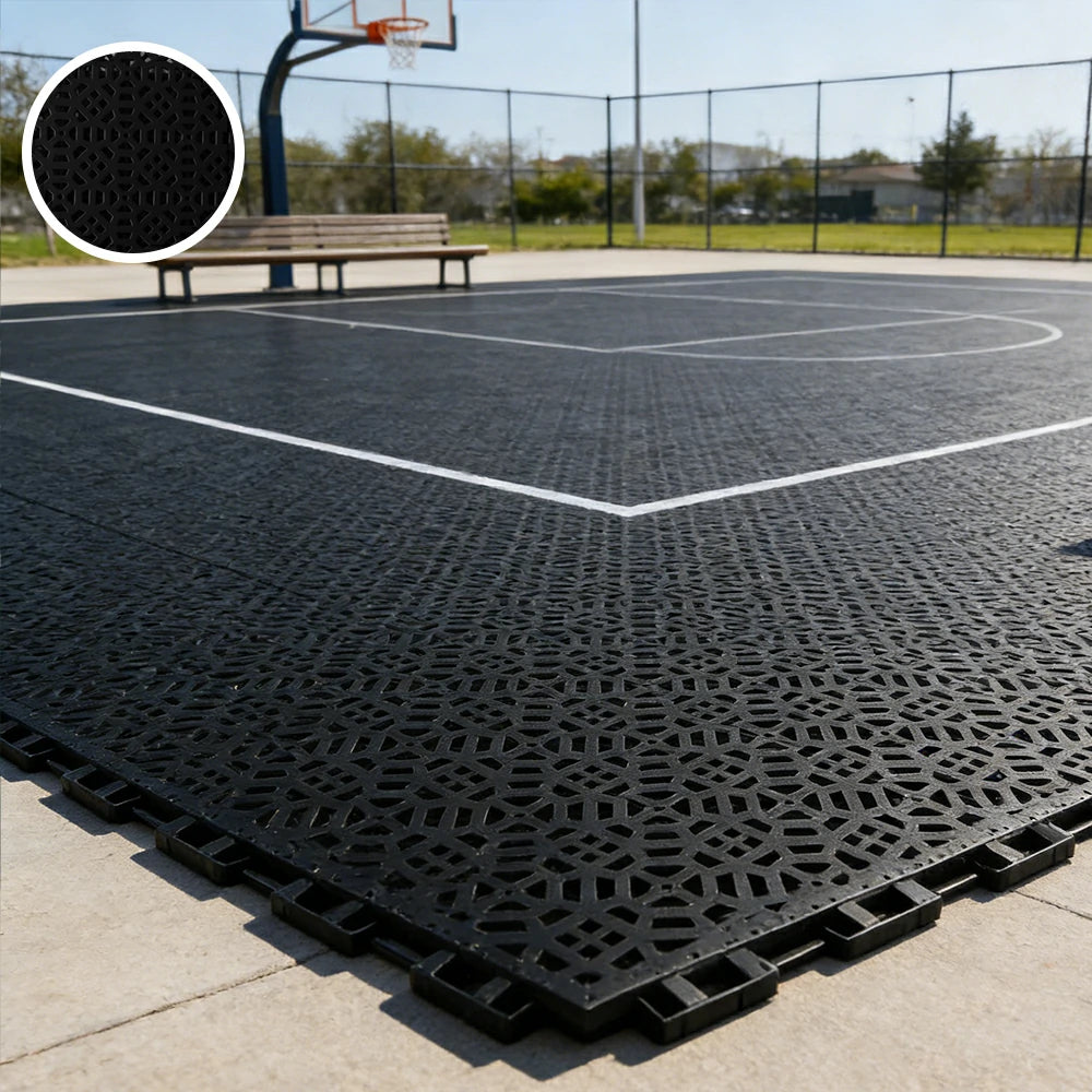 DUNK MASTER Interlocking Sports Floor Tiles - Anti-Slip Grid Pattern Court Flooring 25cm Modular Tiles for Basketball Courts 10/20/30 Square Meters - Black