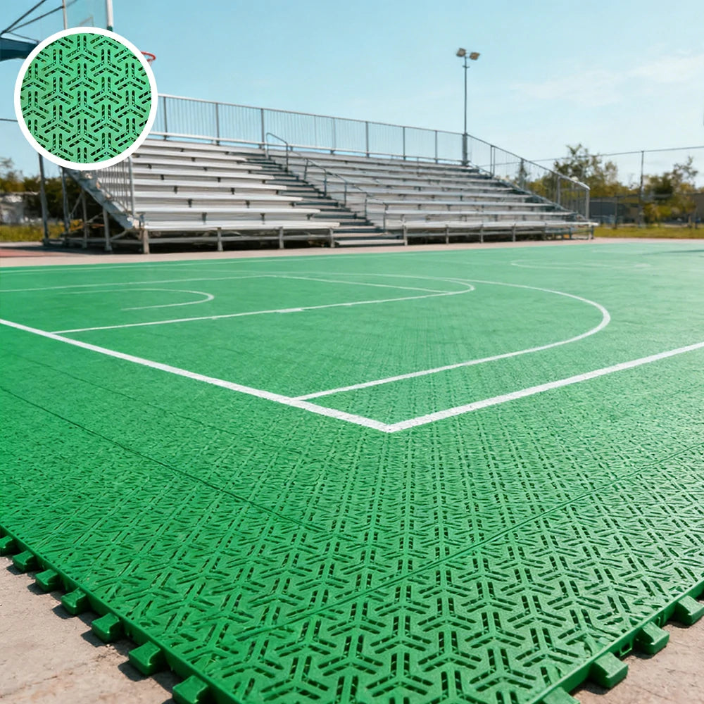 Interlocking modular sports flooring tiles designed for durability, stability, and comfort. The double-layer structure improves rigidity and rebound performance while maintaining a reliable anti-slip surface, making it ideal for basketball courts, school playgrounds, sports training areas, and temporary event venues.