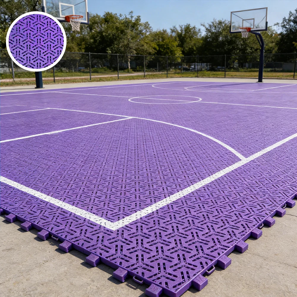 Interlocking modular sports flooring tiles designed for durability, stability, and comfort. The double-layer structure improves rigidity and rebound performance while maintaining a reliable anti-slip surface, making it ideal for basketball courts, school playgrounds, sports training areas, and temporary event venues.