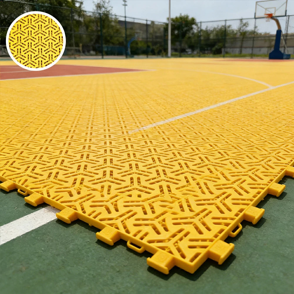 Interlocking modular sports flooring tiles designed for durability, stability, and comfort. The double-layer structure improves rigidity and rebound performance while maintaining a reliable anti-slip surface, making it ideal for basketball courts, school playgrounds, sports training areas, and temporary event venues.