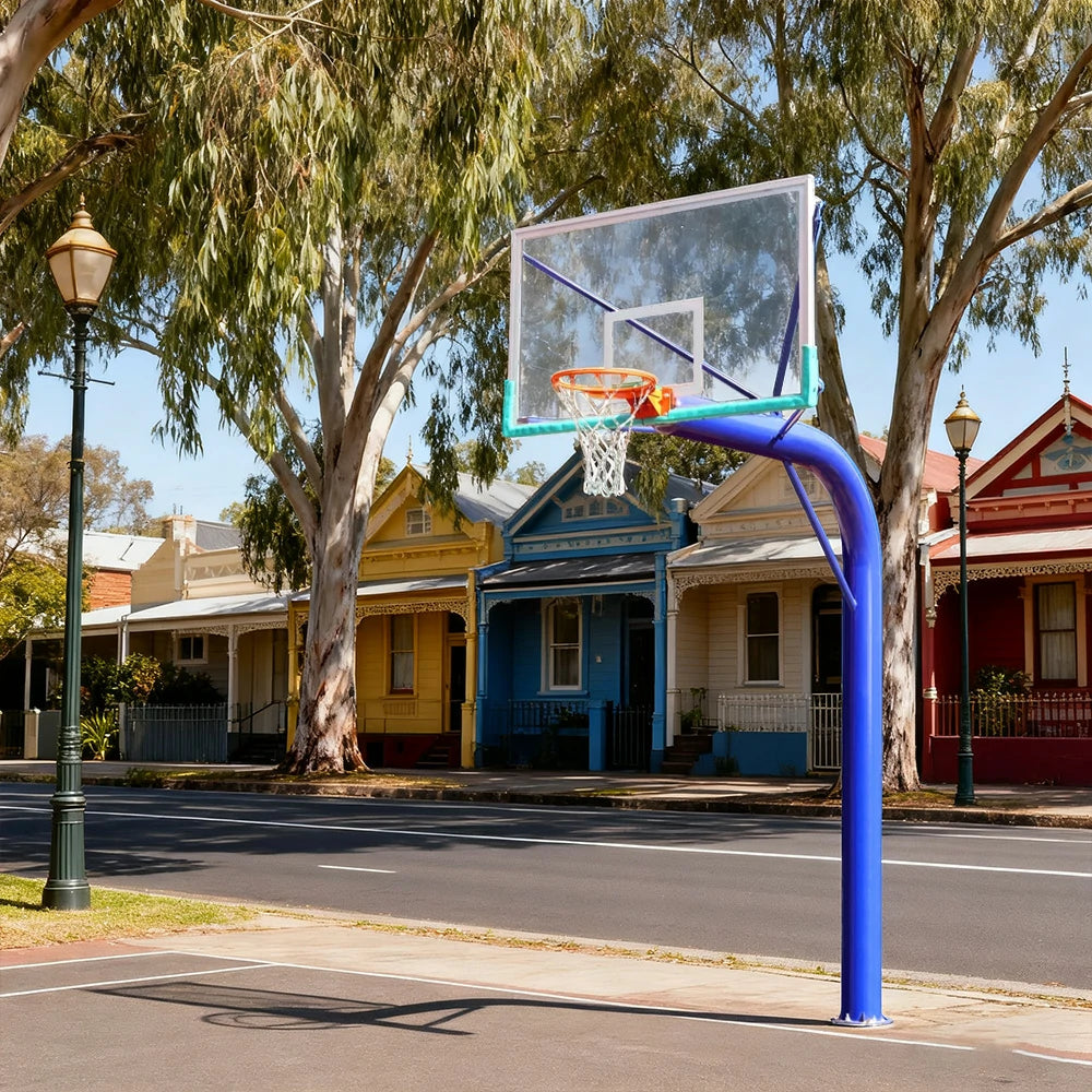 DUNK MASTER In-Ground Basketball Hoop Single Post Design, Tempered Glass Backboard with Aluminium Alloy Frame, 3.05m Rim Height, Heavy-Duty Steel Pole - Blue