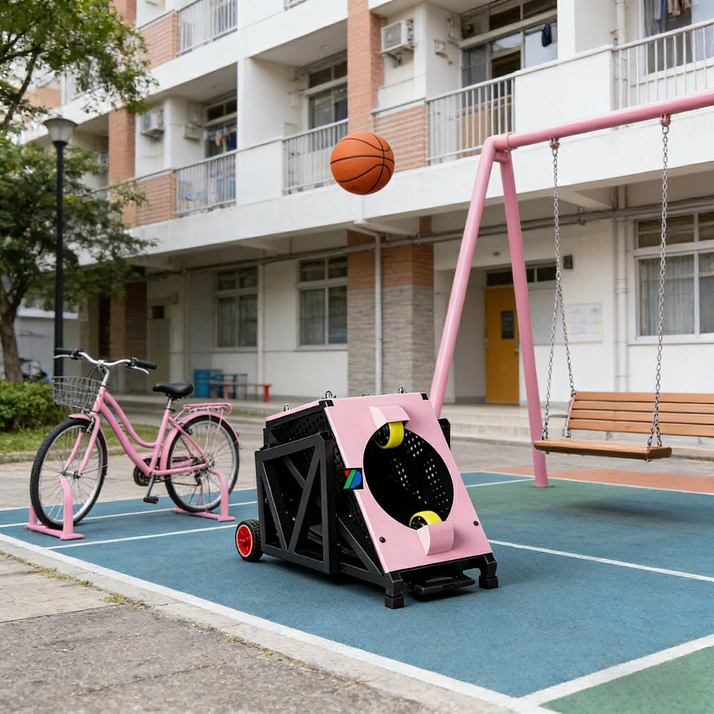 DUNK MASTER Portable Basketball Shooting Machine - Multi-Spot Training, Silicone Tyre Wheels, Professional Training-Grade Rebound System - Pink