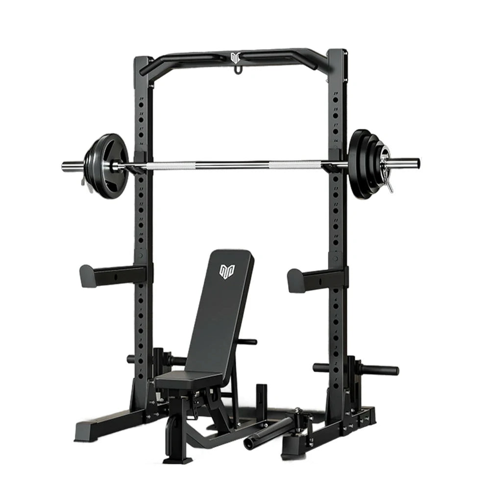 MERIDIAN Multi-Function Power Rack with Bench – Squat, Bench Press, Pull-Up, 19 Height Levels, Space-Saving Design - Black