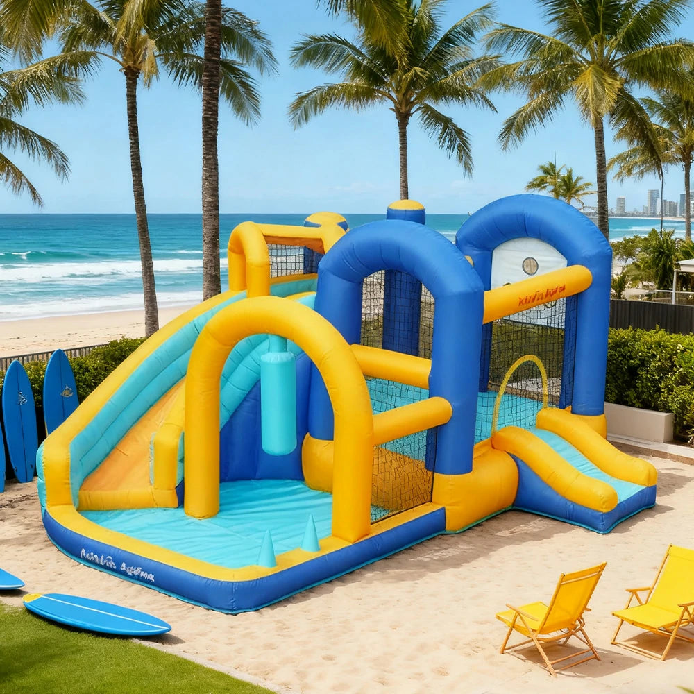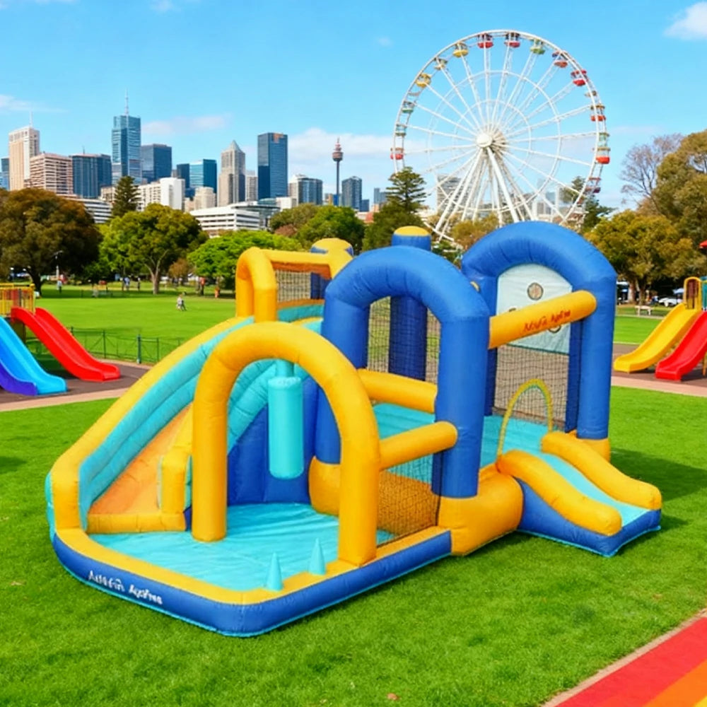 GAMEON Dual Slide PVC Inflatable Bounce Castle with Blower - Blue and Yellow Slide Combo Design