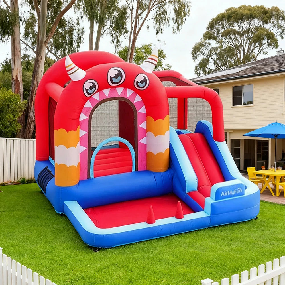 GAMEON Three-Eyed Monster PVC Inflatable Bounce Castle with Blower - Red and Blue Monster Theme Design