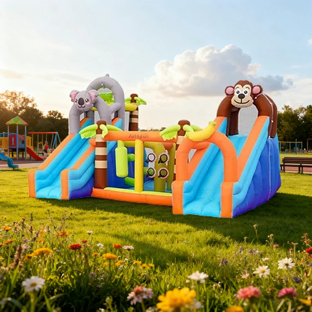 GAMEON Water Spray Zoo Theme Inflatable Bounce Castle PVC Build with Blower - Animal Park Design