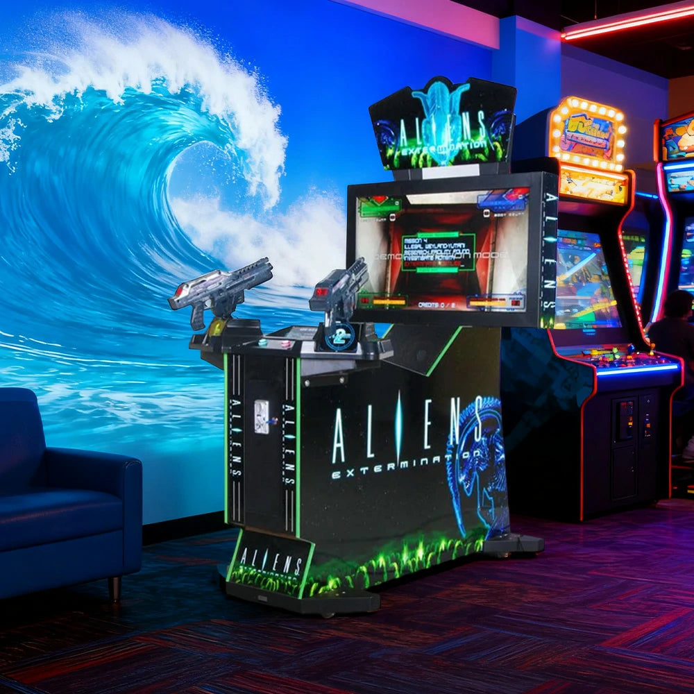 GAMEON Alien Shooting Arcade Machine 42-Inch HD LCD Metal & Acrylic Cabinet Infrared Gun System 400W Power Immersive Two-Player Combat Game - Black