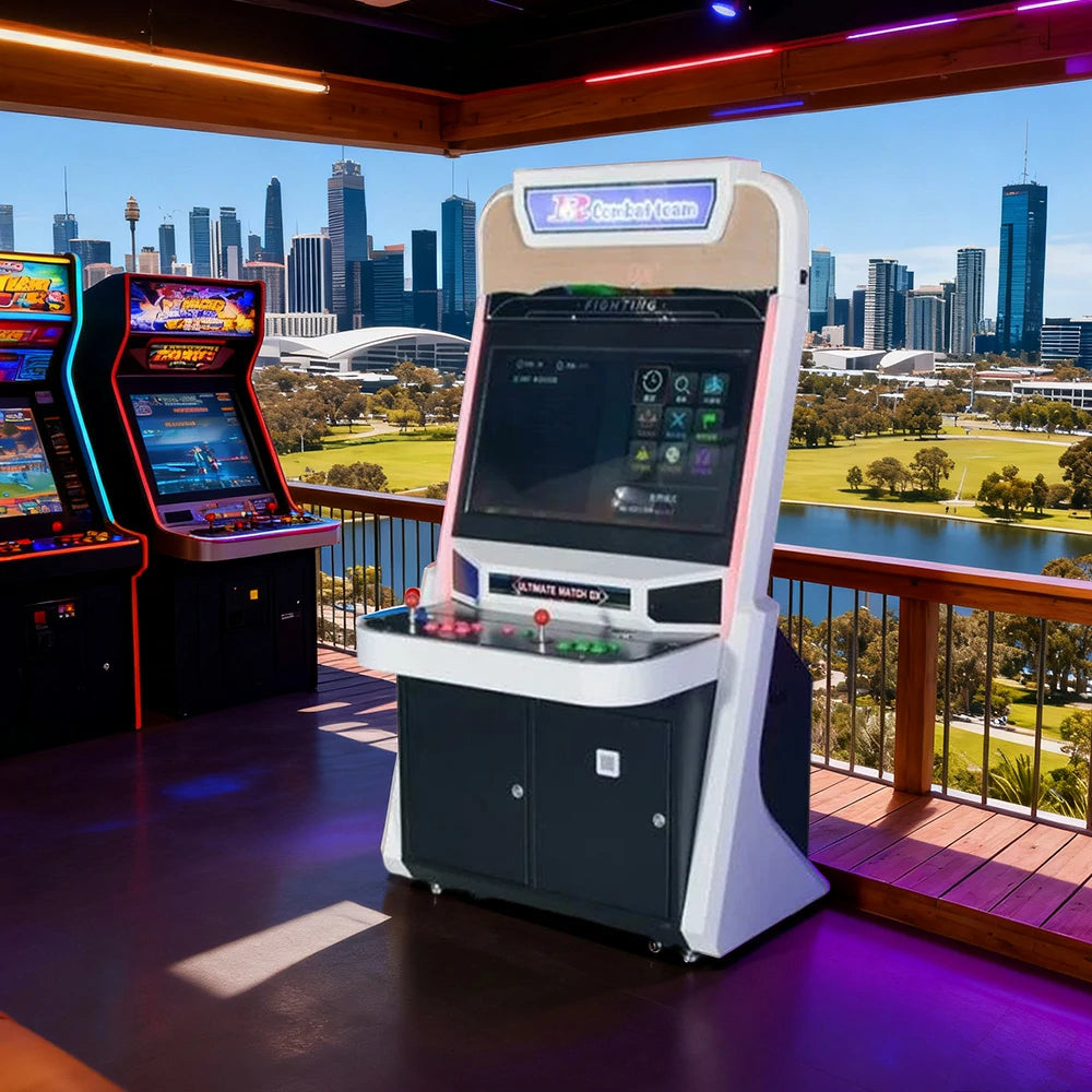 GAMEON R-Team Arcade Machine 32-Inch HD Screen Metal & Acrylic Cabinet 4300+Built-In Retro Games Plug-and-Play Two-Player Battle Console - White