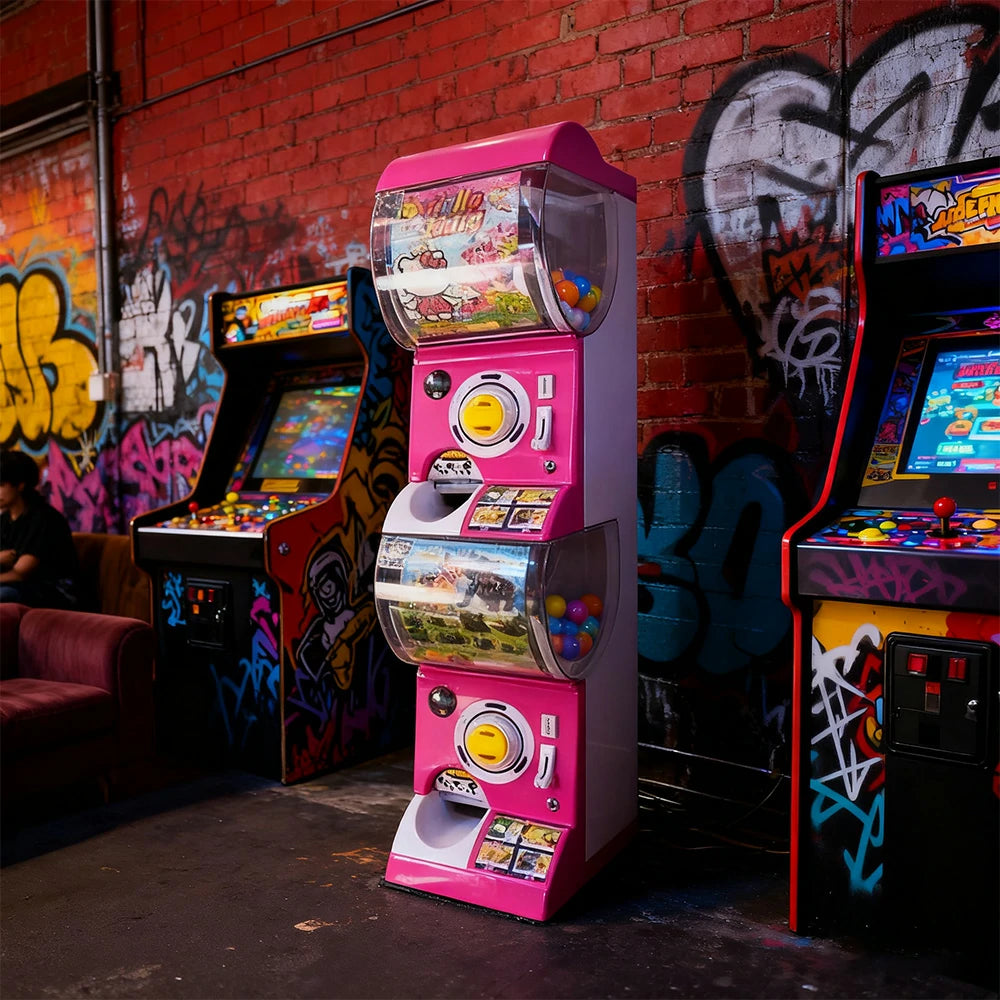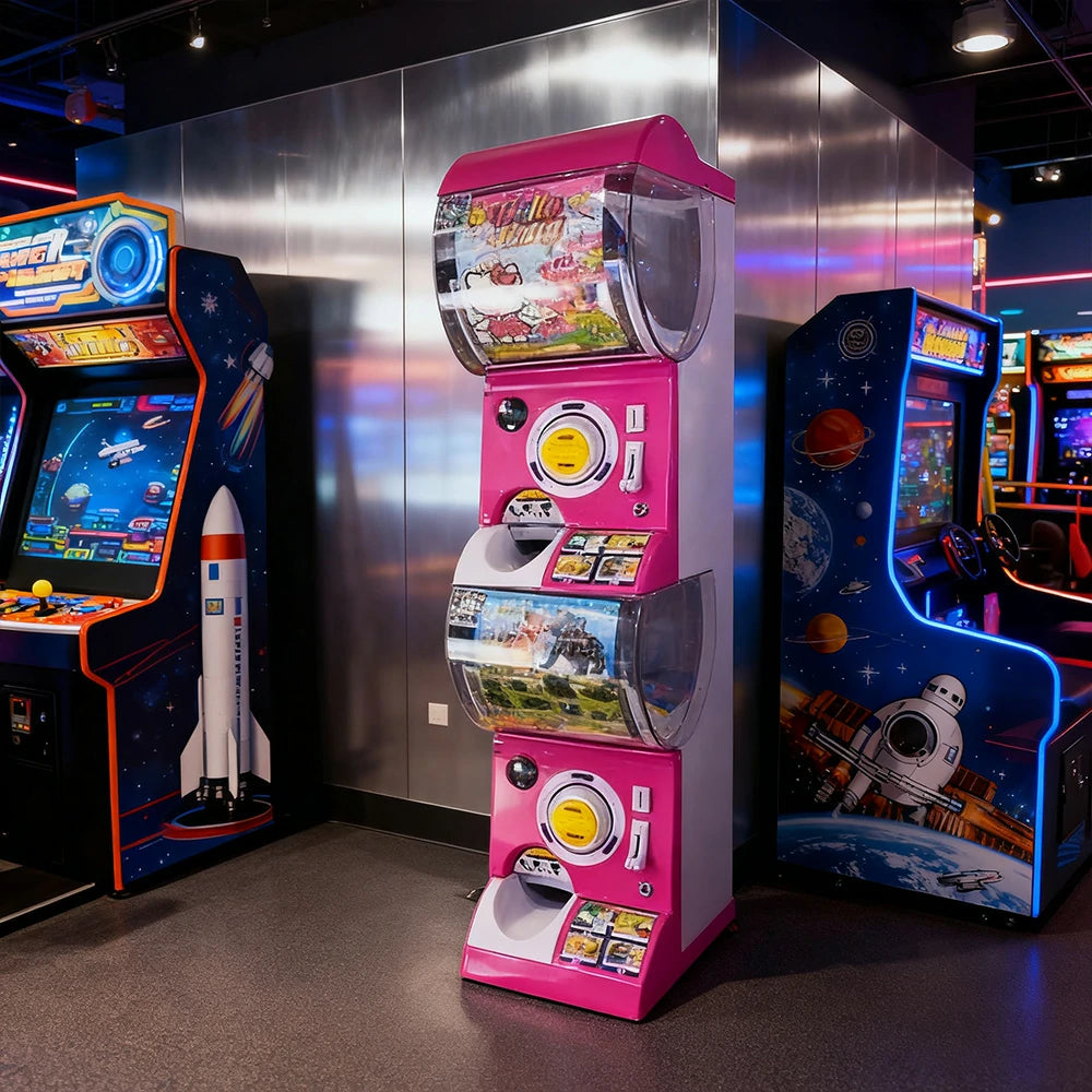 GAMEON Double Layer Capsule Vending Machine Coin Operated Gacha Toy Dispenser ABS Structure Smooth Dual-Compartment Design - Pink