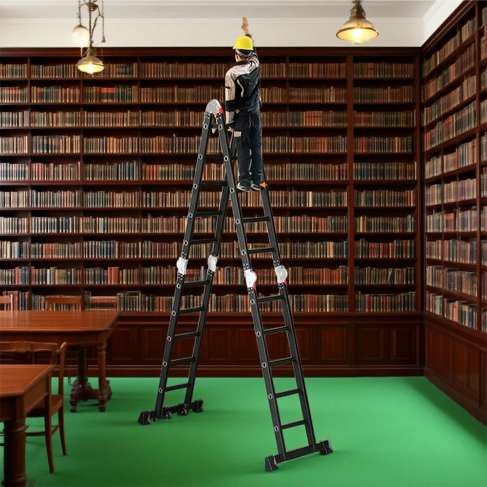 GROVIA 6/8/10 Step Multi-Purpose Folding Ladder, Heavy-Duty Hinges, Adjustable Configurations, Anti-Slip Base - Black