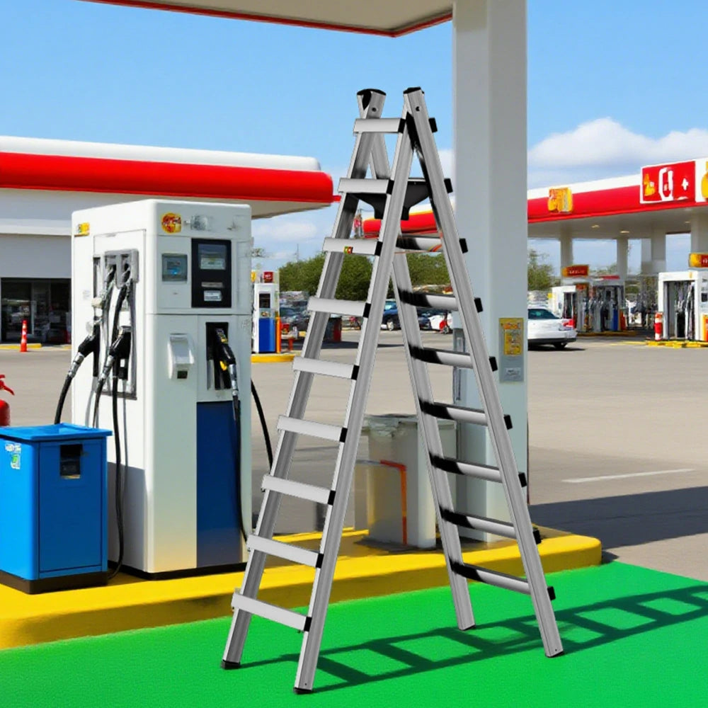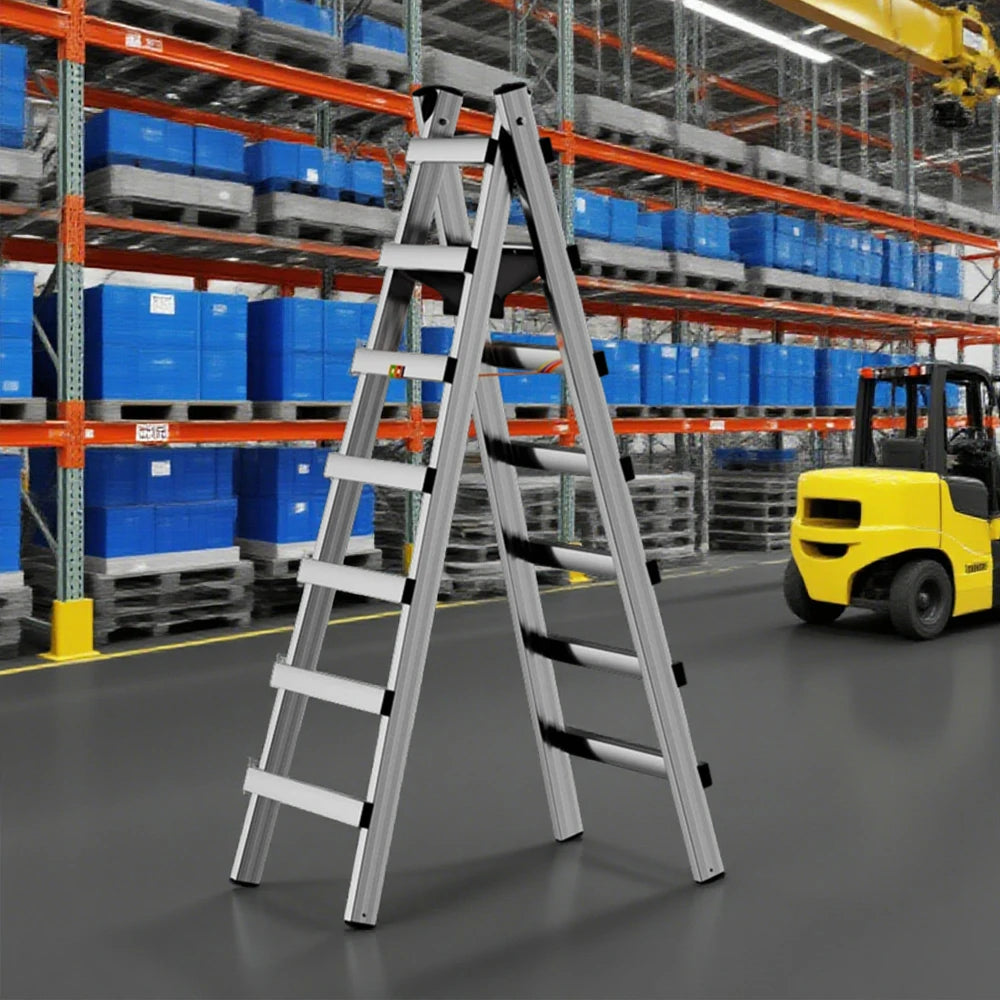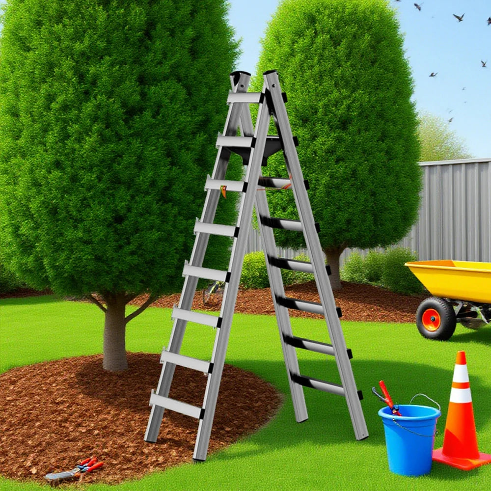 GROVIA 7/8/9-Step Stainless Steel Walking Ladder - Built-in Canvas Tool Bag, Stable Design