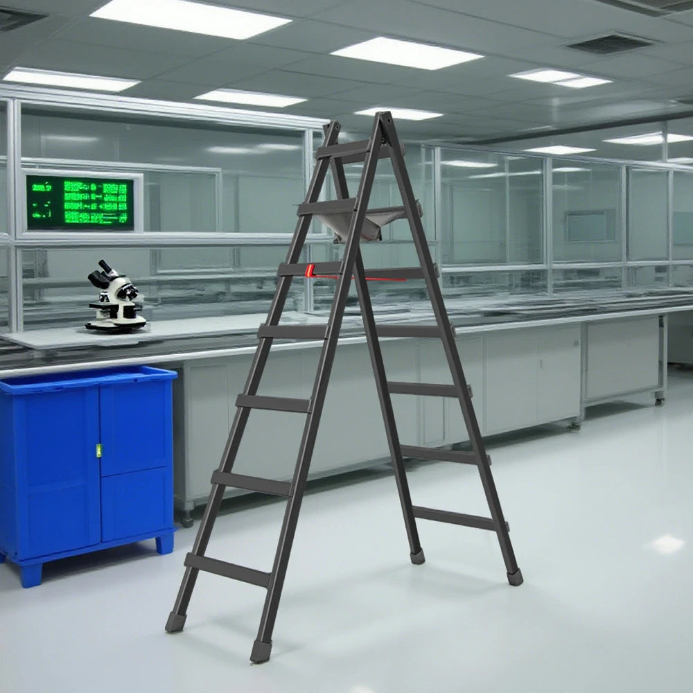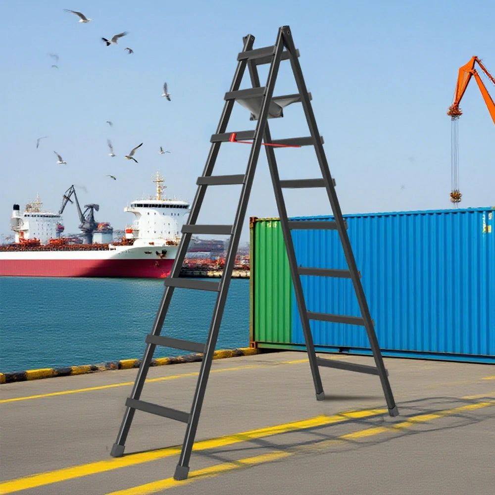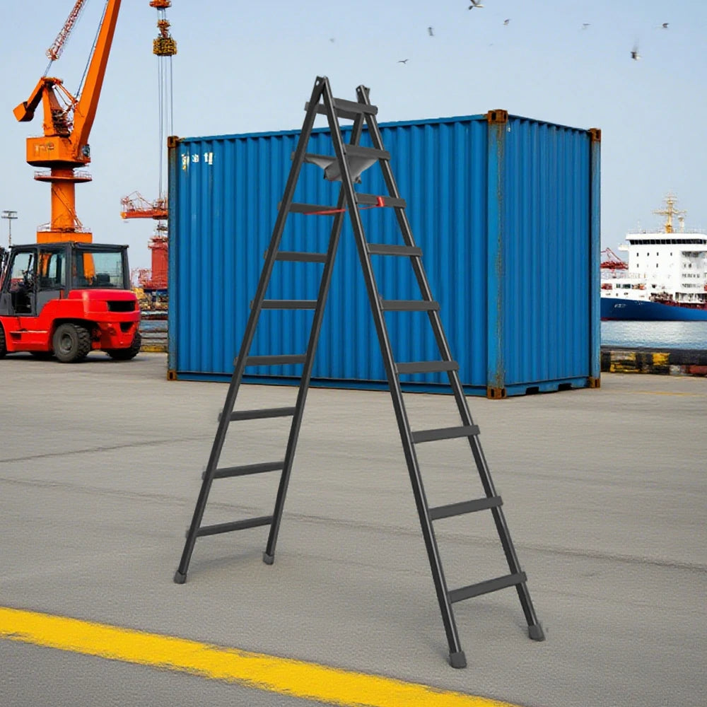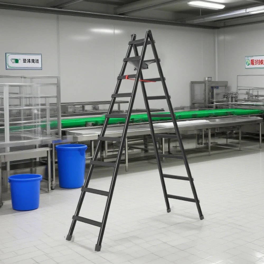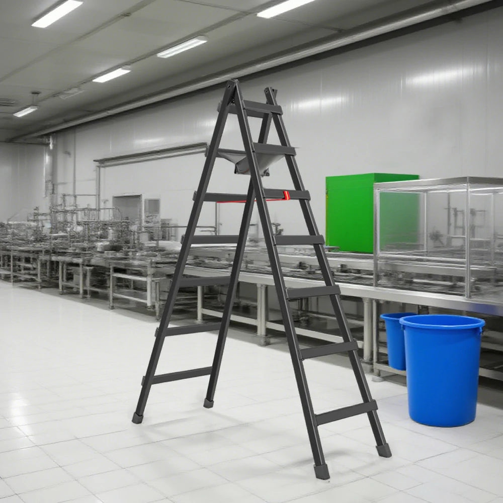 GROVIA 7/8/9-Step Carbon Steel Walking Ladder - Built-in Canvas Tool Bag, Stable Structure - Black