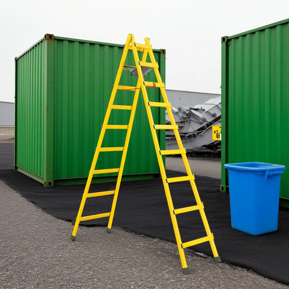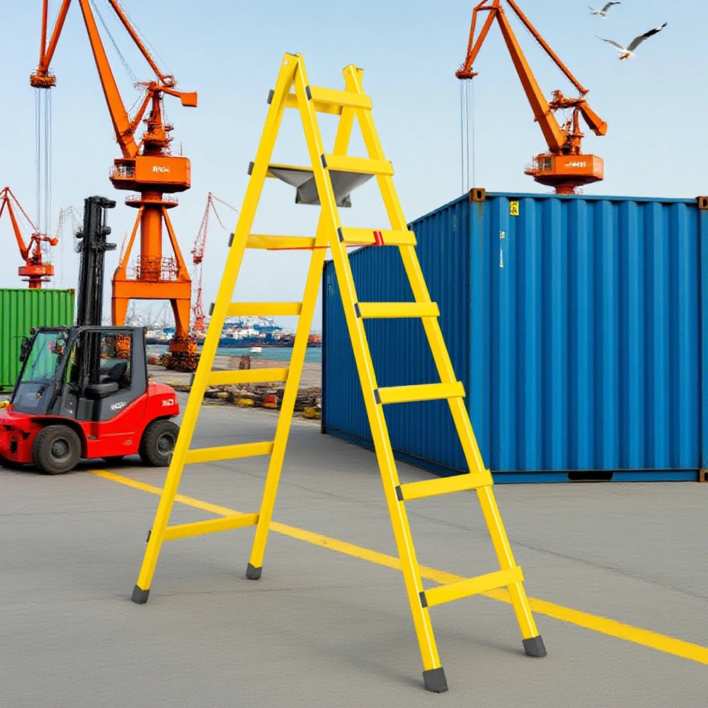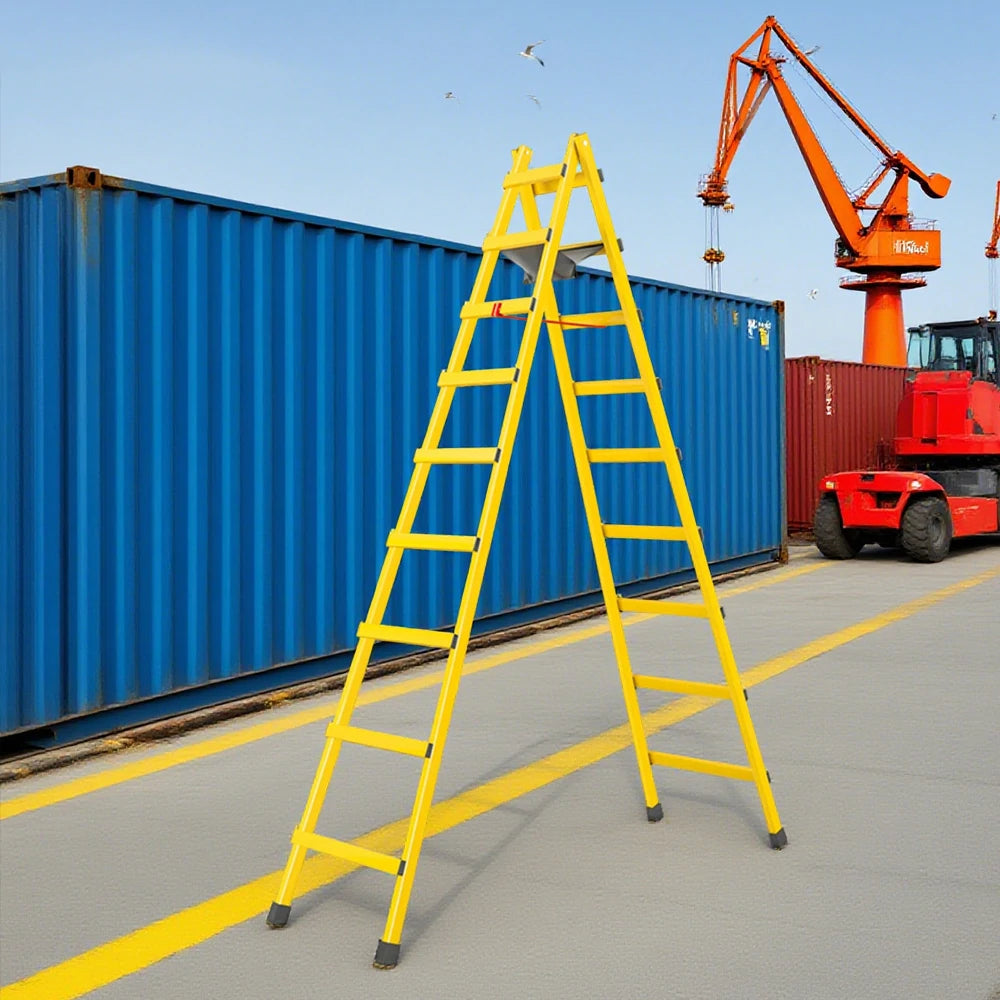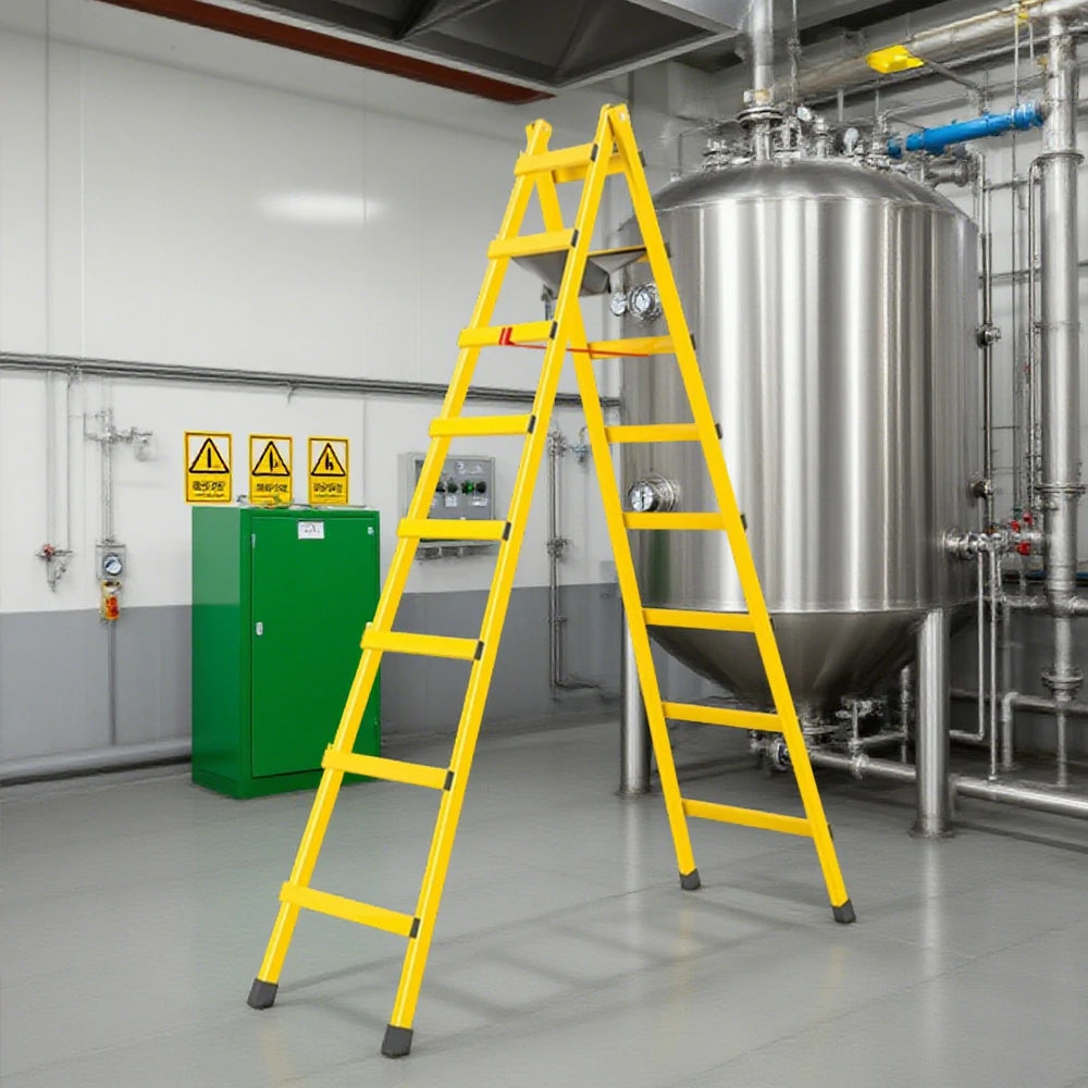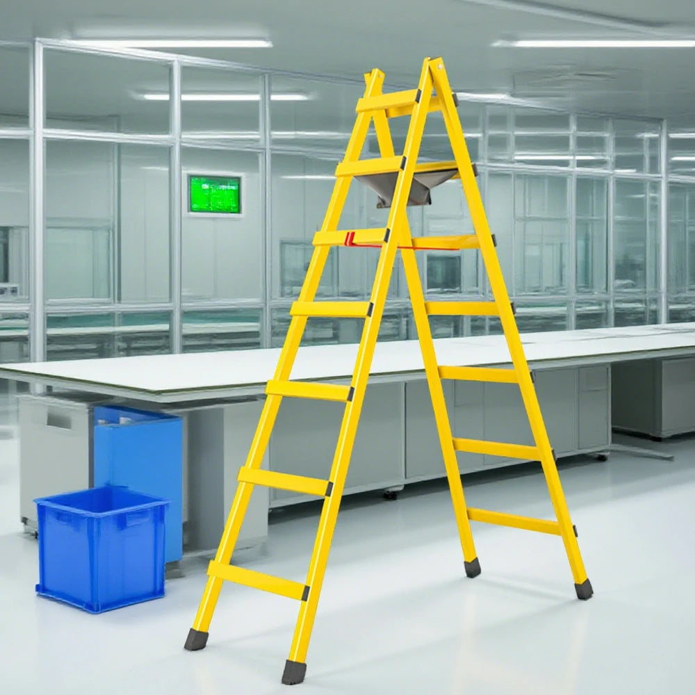GROVIA 7/8/9-Step Carbon Steel Walking Ladder - Built-in Canvas Tool Bag, Stable Structure - Yellow