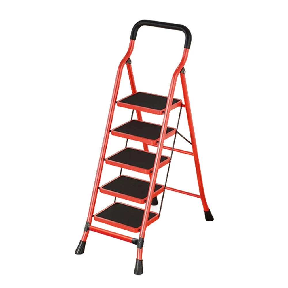 GROVIA 4/5/6-Step Carbon Steel Slim Folding Ladder - 7cm Thick, 26cm Non-Slip Pedal, Stable Anti-Slip Feet - Red
