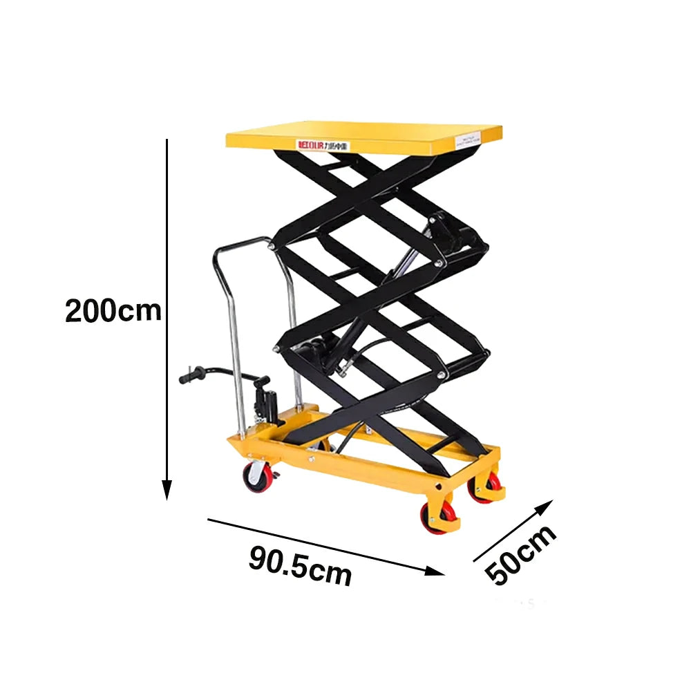 GROVIA Triple Scissor Lift Table Trolley - 500kg Load, 2.0m Lift Height, Wide Platform Design, Heavy-Duty Hydraulic Mobile Lift - Yellow