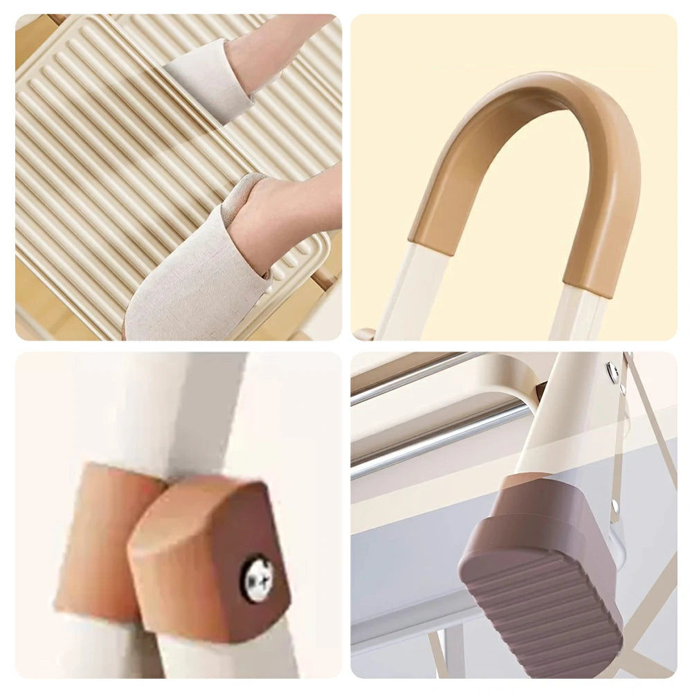 GROVIA 3/4/5-Step Folding Ladder - 7cm Thick, 27×18cm Wide Pedal, Anti-Slip Feet - White