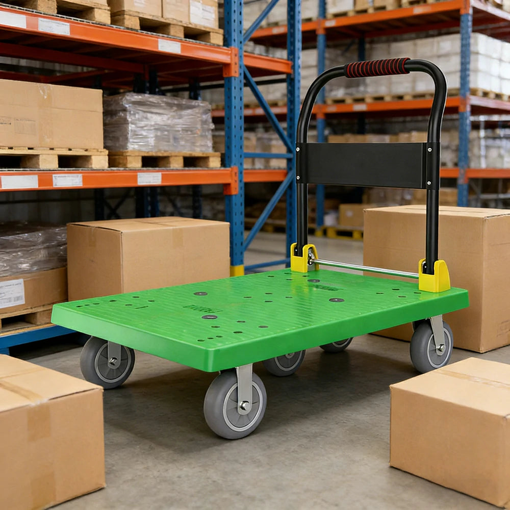 GROVIA Heavy-Duty Platform Trolley - 110x66cm Reinforced Dual-Tube Frame, 6-Inch Industrial Grey Rubber Wheels, Stable & Smooth Transport - Green