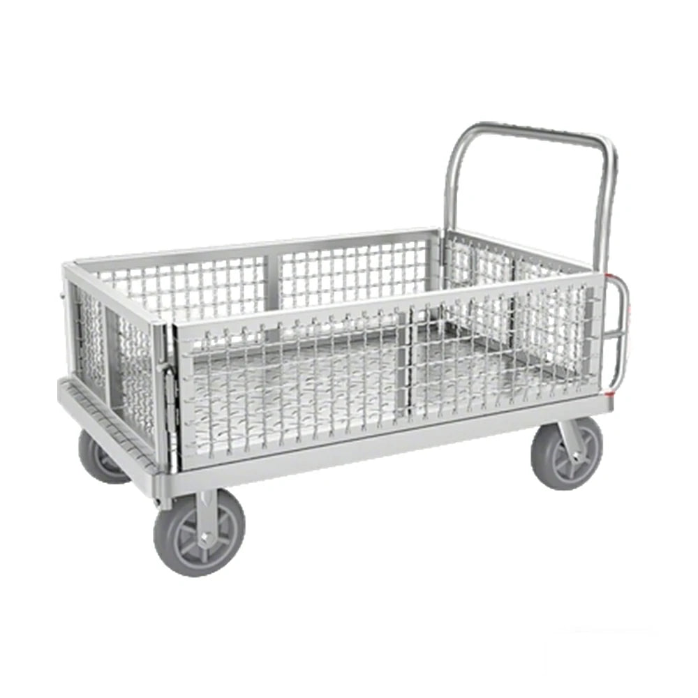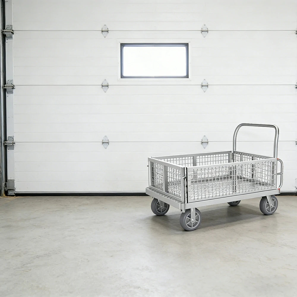 GROVIA Industrial Heavy-Duty Mesh Platform Trolley - 126x76cm, Foldable Cage Design, Quiet 8-Inch Rubber Wheels, High Load Capacity - Silver