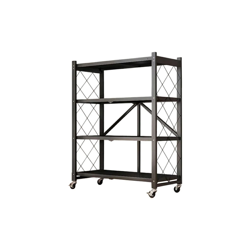 GROVIA 4-Tier Storage Rack, Tool-Free Snap-Lock Assembly, Heavy-Duty Steel Frame, Smooth Castors, Ventilated Shelves - Black