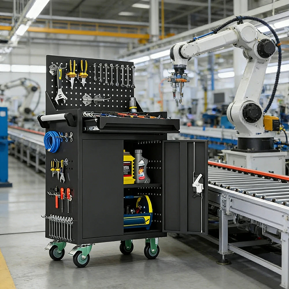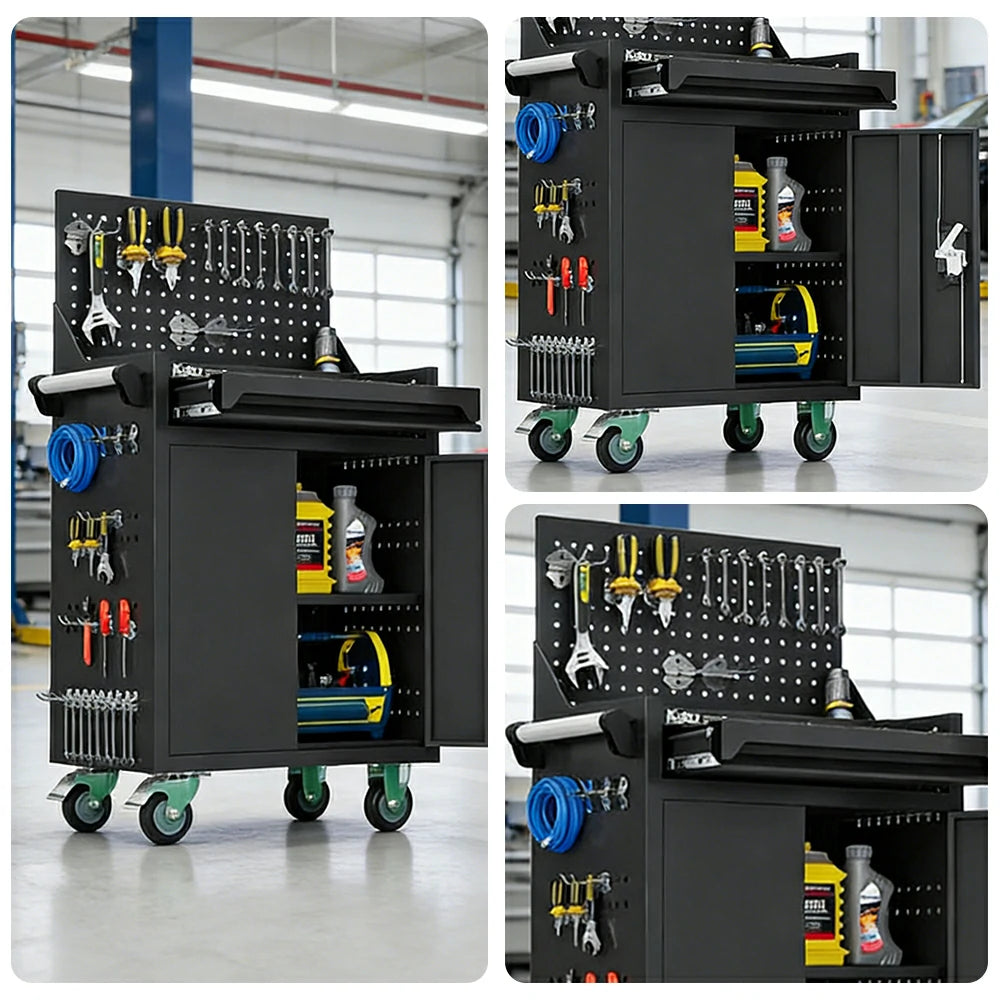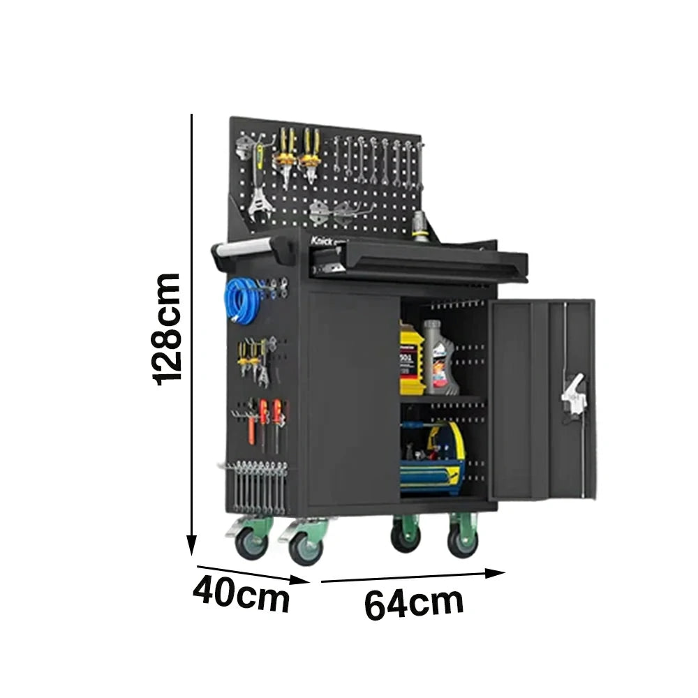 GROVIA Mobile Tool Trolley with Pegboard - Single Drawer Design, Heavy-Duty Steel Cabinet, Lockable Storage for Workshop & Garage - Graphite Grey