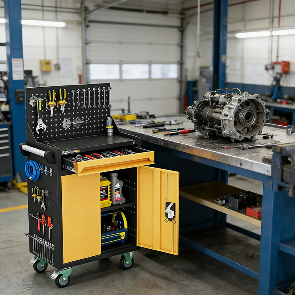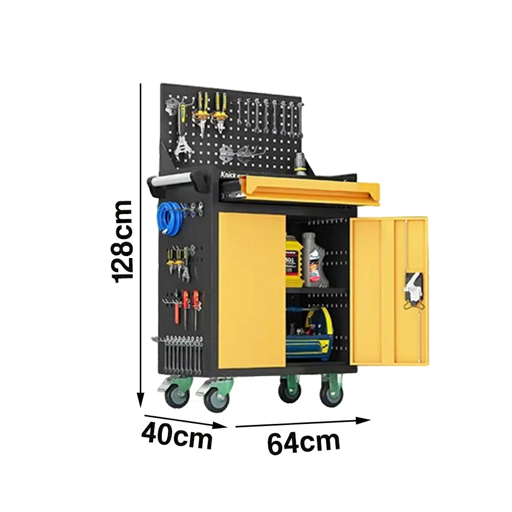 GROVIA Mobile Tool Trolley with Pegboard - Single Drawer Design, Heavy-Duty Steel Cabinet, Lockable Storage for Workshop & Garage - Yellow