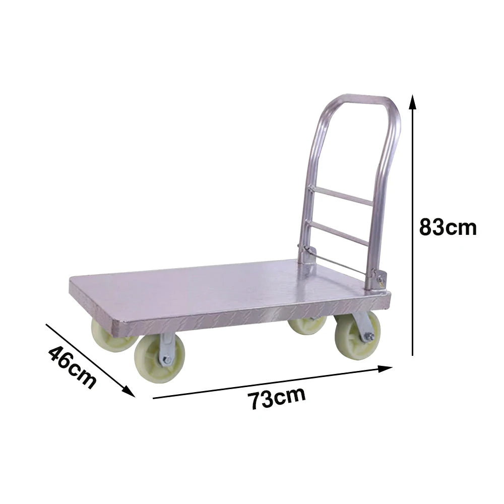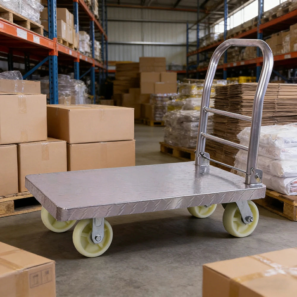 GROVIA Heavy-Duty Steel Platform Trolley - 73/90cm, 6-Inch Nylon Wheels, 350/450kg Load Capacity, Industrial Warehouse Transport - Silver