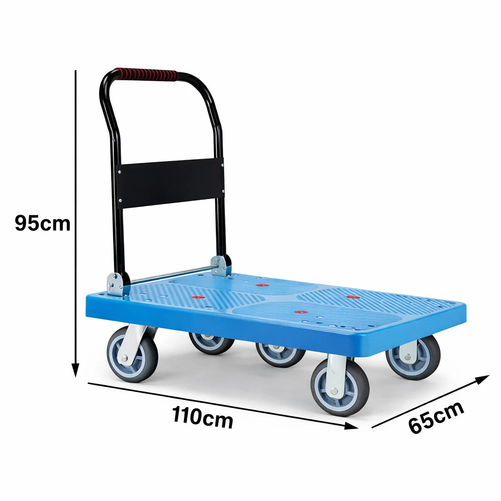 GROVIA Heavy-Duty Folding Platform Trolley - 90/110cm, 8-Inch Grey Rubber Solid Wheels, Ultra-Quiet, 450/600kg Load Capacity, Electroplated Steel Handle - Blue