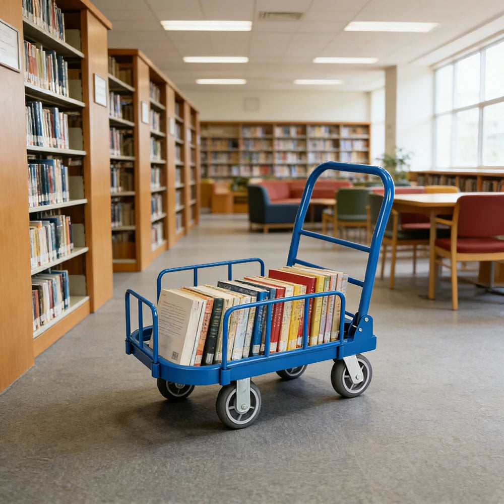 GROVIA Heavy-Duty Guard Rail Platform Trolley - 75/90cm, Ultra-Quiet 6-Inch Effort-Saving Wheels, 425/500kg Load Capacity, Warehouse & Logistics Transport - Blue