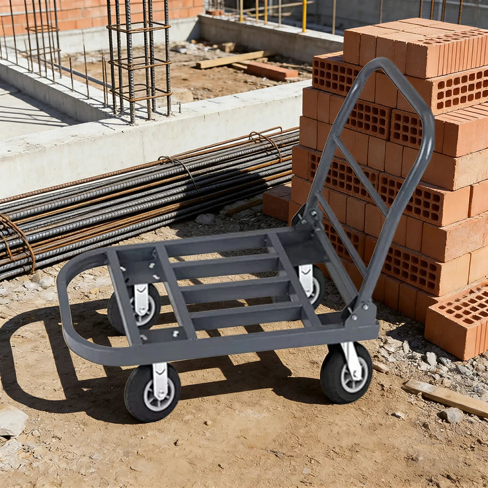 GROVIA Heavy-Duty Steel Tube Platform Trolley - 75/90cm, Ultra-Quiet 6-Inch Black Rubber Wheels, High Load Capacity, Warehouse Transport - Steel Grey
