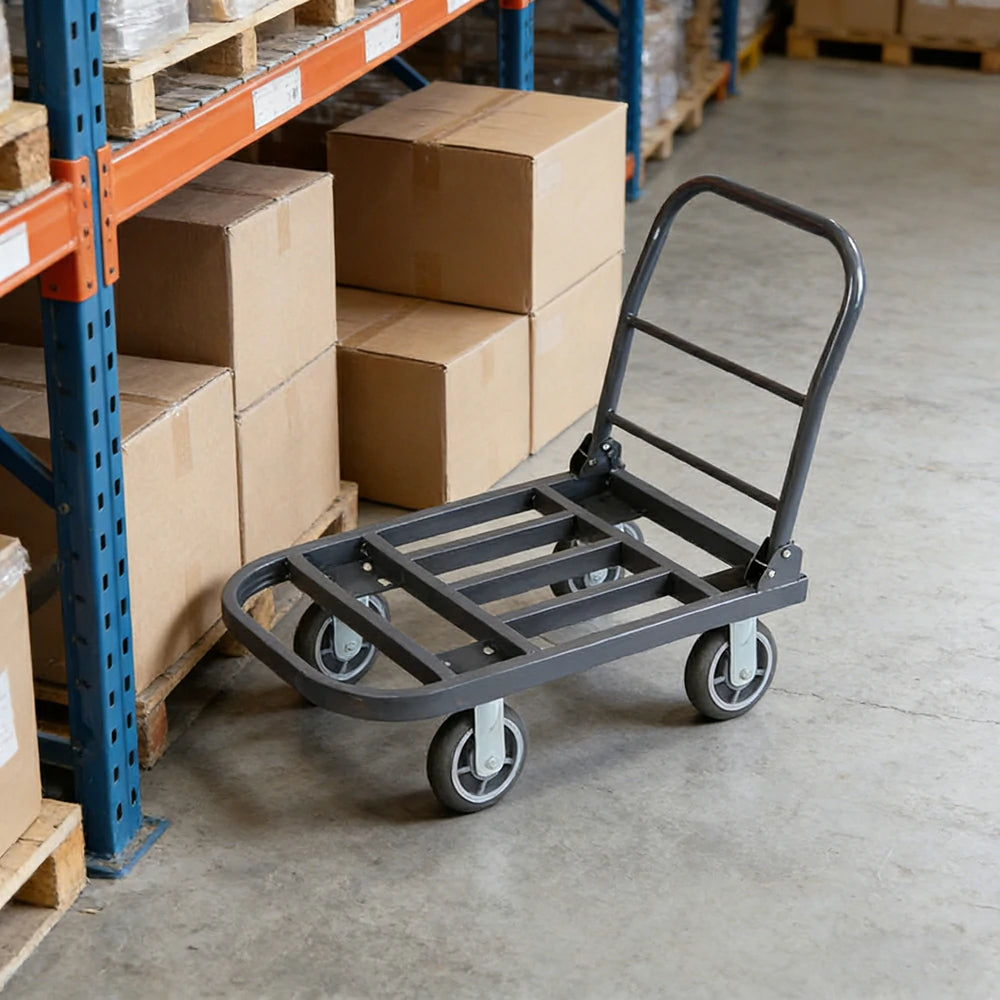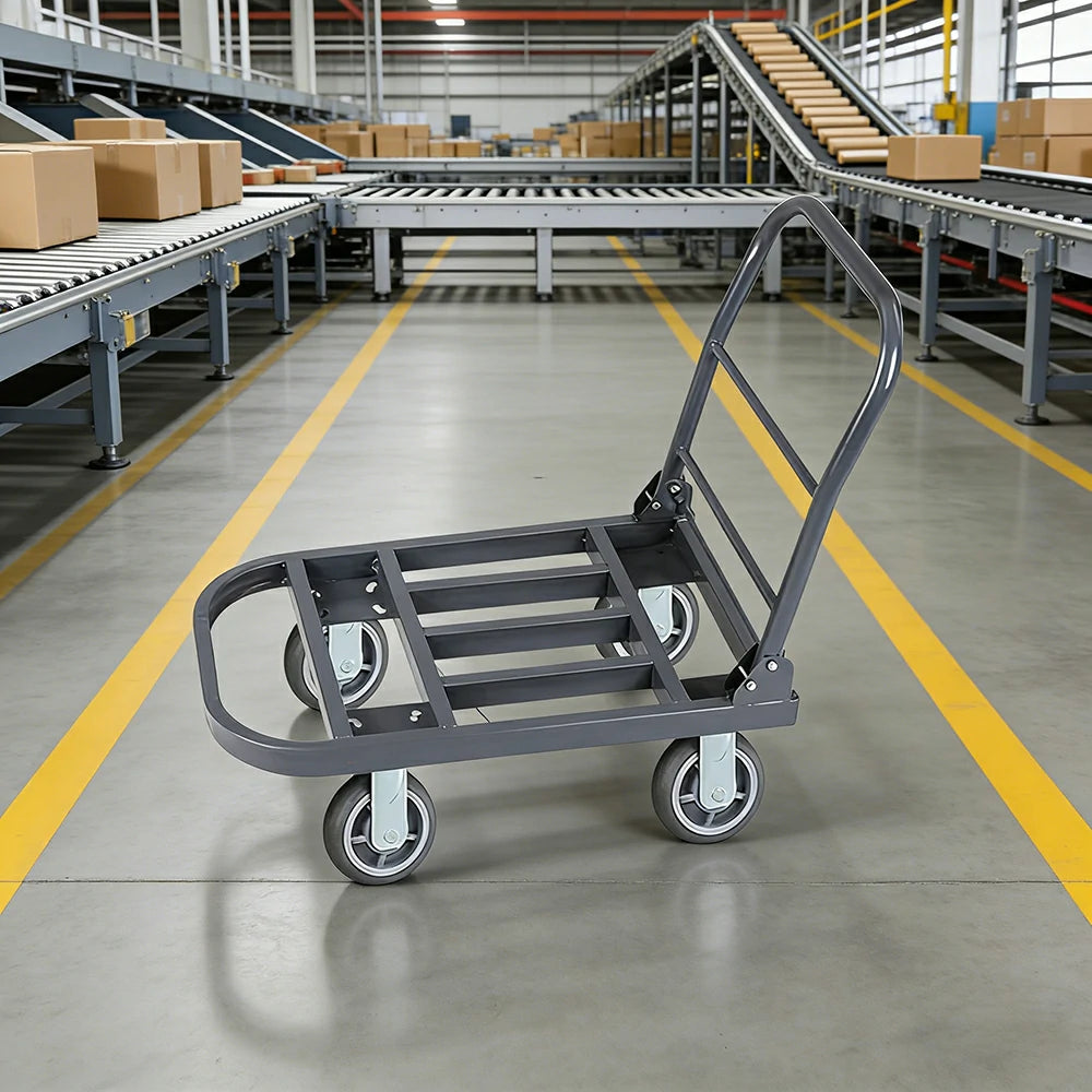 GROVIA Heavy-Duty Steel Tube Platform Trolley - 75/90cm, Ultra-Quiet 6-Inch Effort-Saving Wheels, 400/500kg Load Capacity, Warehouse Transport - Steel Grey